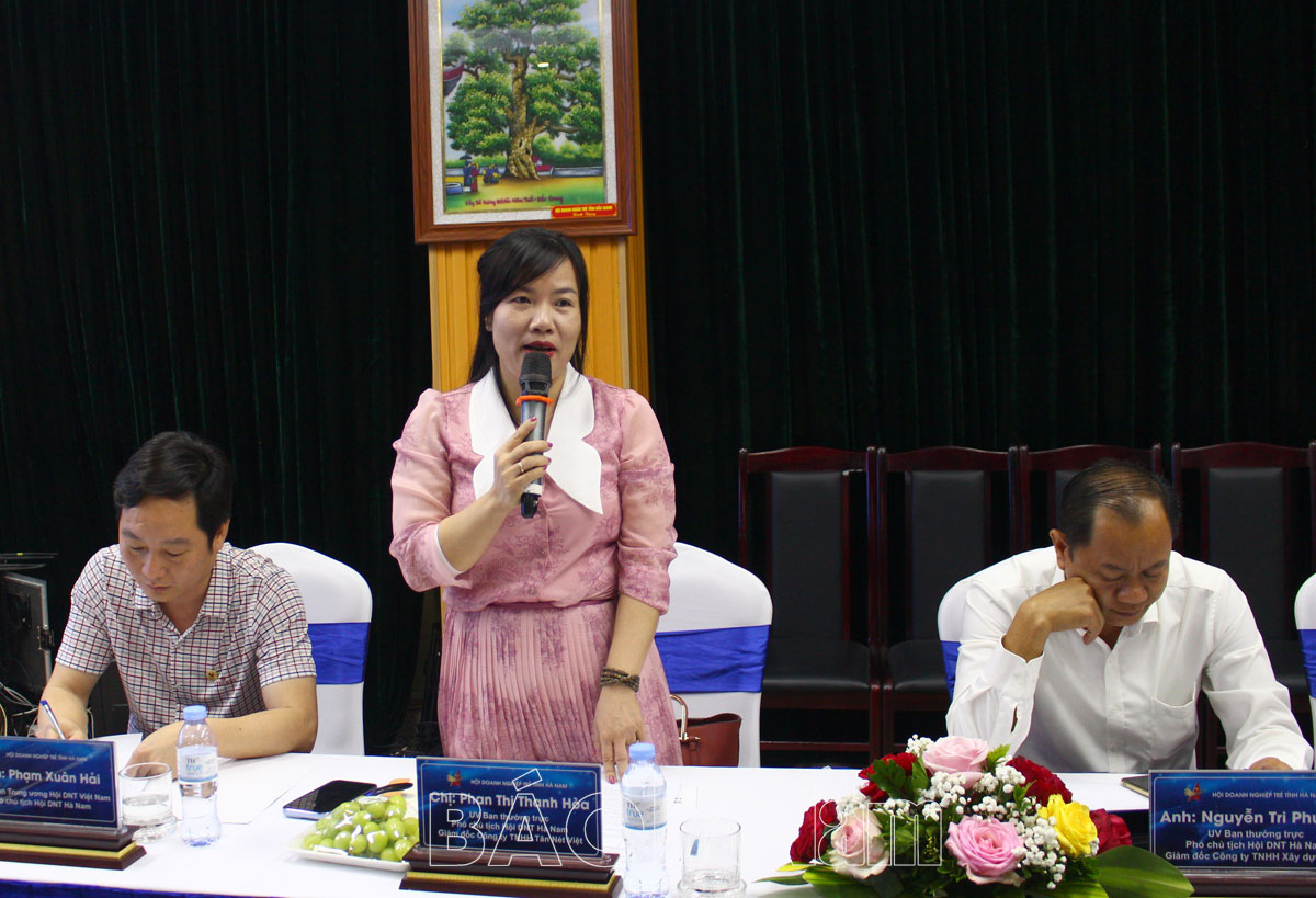 Hội viên Hội Doanh nghiệp trẻ Hà Nam phát biểu thảo luận tại hội nghị.