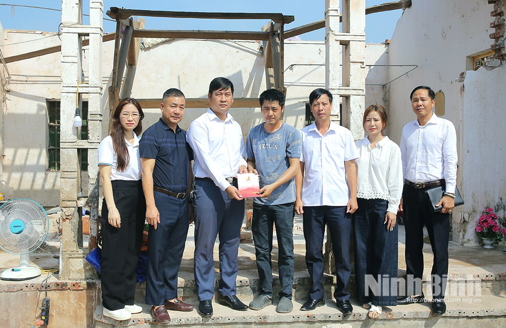 Lãnh đạo Hội Doanh nhân trẻ tỉnh Ninh Bình và lãnh đạo xã Yên Khánh trao kinh phí hỗ trợ gia đình bị thiệt hại do cơn bão số 10 tại xã Yên Khánh.