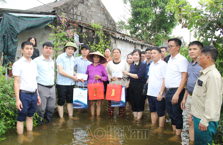 Hội Doanh nghiệp trẻ tỉnh thăm, tặng quà gia đình bị ngập lụt ở thôn Phú Cốc, xã Phú Phúc, Lý Nhân.