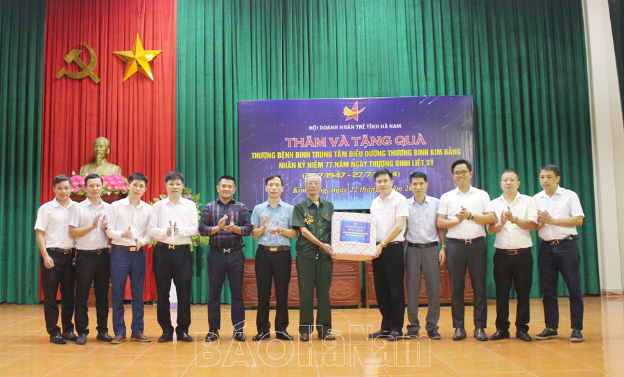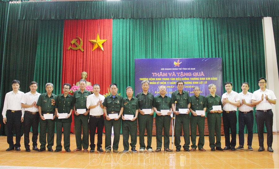 Thăm Trung tâm Điều dưỡng thương binh Kim Bảng, Hội Doanh nhân trẻ tỉnh đã trao tặng Trung tâm số tiền 5 triệu đồng; trao tặng 91 suất quà, mỗi suất trị giá 300.000 đồng và gửi lời động viên sức khoẻ, tinh thần tới các thương, bệnh binh đang sinh hoạt, điều trị tại trung tâm.