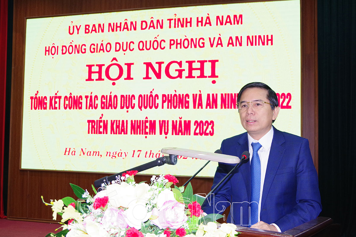 Phát biểu kết luận hội nghị, đồng chí Trần Xuân Dưỡng, TUV, Phó Chủ tịch UBND tỉnh, Chủ tịch Hội đồng Giáo dục QP&AN tỉnh nhấn mạnh: Giáo dục QP&AN là nhiệm vụ hết sức quan trọng trong đường lối QP, AN của Đảng và Nhà nước. Để công tác giáo dục QP&AN đạt kết quả tốt, thời gian tới đề nghị Hội đồng giáo dục QP&AN các cấp trong tỉnh chú trọng thực hiện nghiêm công tác giáo dục QP&AN cho các đối tượng, mở rộng bồi dưỡng giáo dục QP&AN với đối tượng đặc thù. Tăng cường và nâng cao chất lượng công tác tuyên truyền giáo dục QP&AN toàn dân trên các phương tiện thông tin đại chúng; đẩy mạnh viết bài tuyên truyền, đấu tranh trên Internet, mạng xã hội.