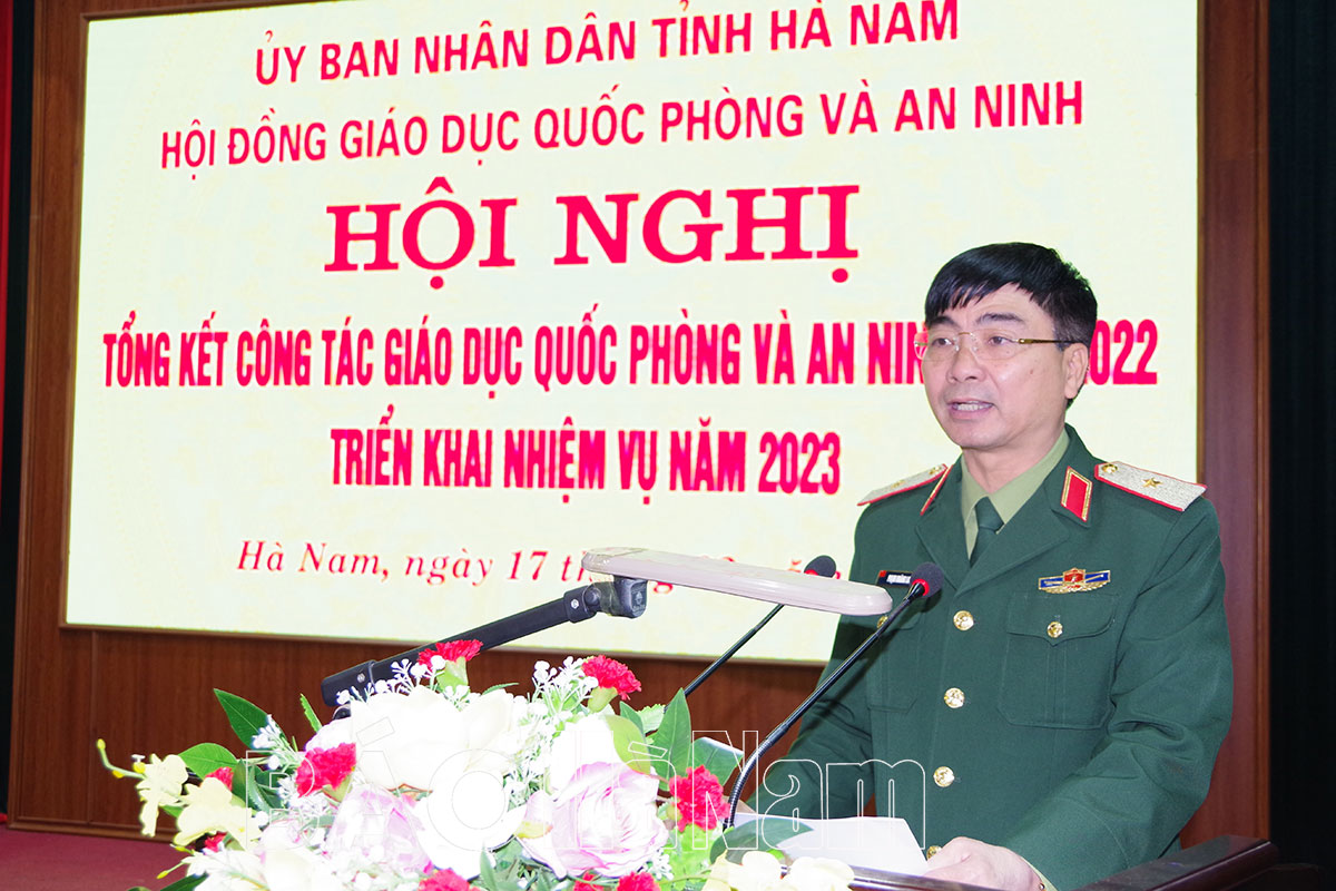 Ghi nhận và biểu dương những kết quả đạt được trong công tác giáo dục QP&AN của tỉnh, Thiếu tướng Phạm Hoàng Long, Phó Tham mưu trưởng, Ủy viên Hội đồng Giáo dục QP&AN Quân khu 3 cho rằng: năm 2023 tình hình thế giới, khu vực diễn biến phức tạp. Chiến dịch quân sự đặc biệt giữa Nga và Ukraina còn phức tạp, ảnh hưởng không nhỏ tới các nước khác, trong đó có Việt Nam. Để đảm bảo ổn định tình hình, công tác bồi dưỡng kiến thức QP&AN cho các đối tượng và toàn dân cần tiếp tục được quan tâm chỉ đạo, xác định cả nhiệm vụ trước mắt và lâu dài. Các cấp, các ngành xác định rõ tầm quan trọng của công tác giáo dục QP&AN, chủ động bồi dưỡng, giáo dục QP&AN các đối tượng theo kế hoạch, mở rộng bồi dưỡng kiến thức QP&AN cho các đối tượng đặc thù nhằm nâng cao nhận thức, ý thức trách nhiệm của toàn dân đối với hai nhiệm vụ chiến lược xây dựng và bảo vệ Tổ quốc trong tình hình mới.