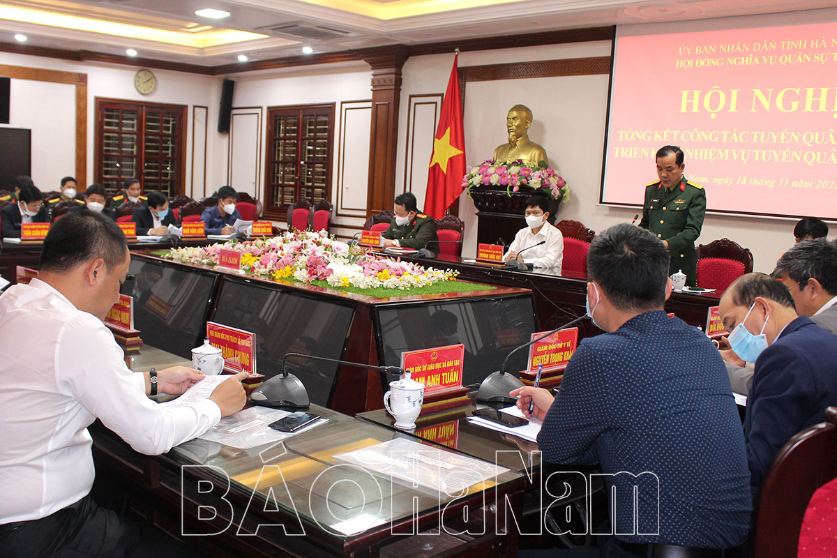 Năm 2022, Thủ tướng Chính phủ giao cho Hà Nam tuyển chọn 1.495 chỉ tiêu công dân nhập ngũ (Quân đội nhân dân: 1.250 chỉ tiêu, Công an nhân dân: 245 chỉ tiêu); chú trọng tuyển chọn, gọi nhập ngũ những công dân đã tốt nghiệp đại học, cao đẳng; tỷ lệ công dân có ngành nghề chuyên môn cần cho quân đội đạt 10% trở lên.