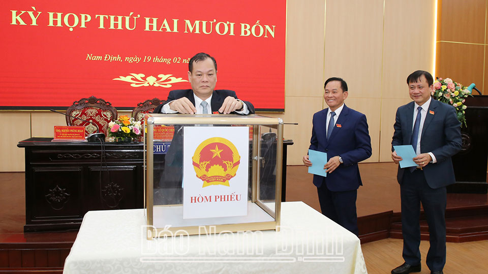 Tiếp đó, Kỳ họp đã xem xét và biểu quyết miễn nhiệm chức vụ Ủy viên UBND tỉnh khóa XIX, nhiệm kỳ 2021-2026 (từ ngày 1/3/2025) đối với các đồng chí: Đại tá Nguyễn Bá Thịnh, nguyên Ủy viên Ban TVTU, Chỉ huy trưởng Bộ CHQS tỉnh; Nguyễn Thị Thu Thủy, TUV, Giám đốc Sở Lao động - Thương binh và Xã hội; Đinh Xuân Hùng, TUV, Giám đốc Sở Giao thông Vận tải; Nguyễn Sinh Tiến, Giám đốc Sở Nông nghiệp và Phát triển nông thôn; Phạm Thanh Bình, Giám đốc Sở Tài chính do nhận nhiệm vụ mới; Đỗ Hải Điền, Giám đốc Sở Khoa học và Công nghệ do nghỉ hưu. Đồng thời giới thiệu nhân sự và bỏ phiếu bầu chức danh Ủy viên UBND tỉnh khóa XIX, nhiệm kỳ 2021-2026. Kết quả đồng chí Đại tá Trần Ngọc Yên, Chỉ huy trưởng Bộ CHQS tỉnh trúng cử chức vụ Ủy viên UBND tỉnh khóa XIX, nhiệm kỳ 2021-2026.