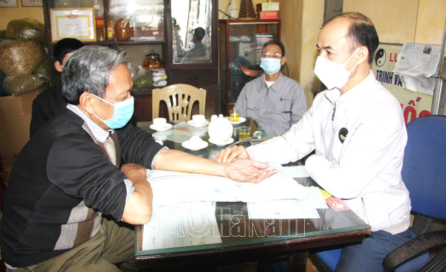 Khám bệnh cho nhân dân tại phòng chẩn trị Hội Đông y huyện Bình Lục.