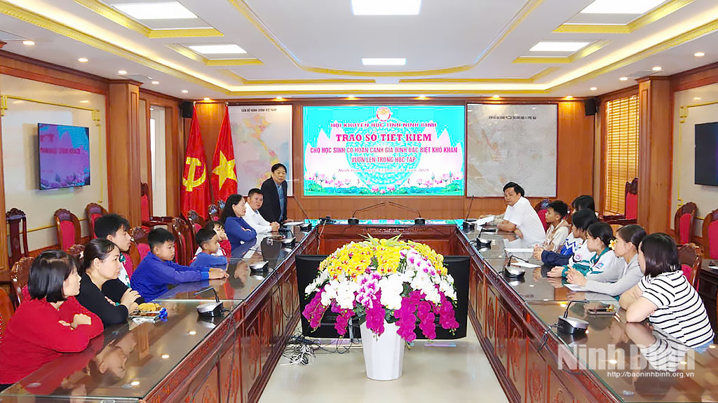 Hội Khuyến học tỉnh trao sổ tiết kiệm cho các cháu học sinh có hoàn cảnh khó khăn trên địa bàn.