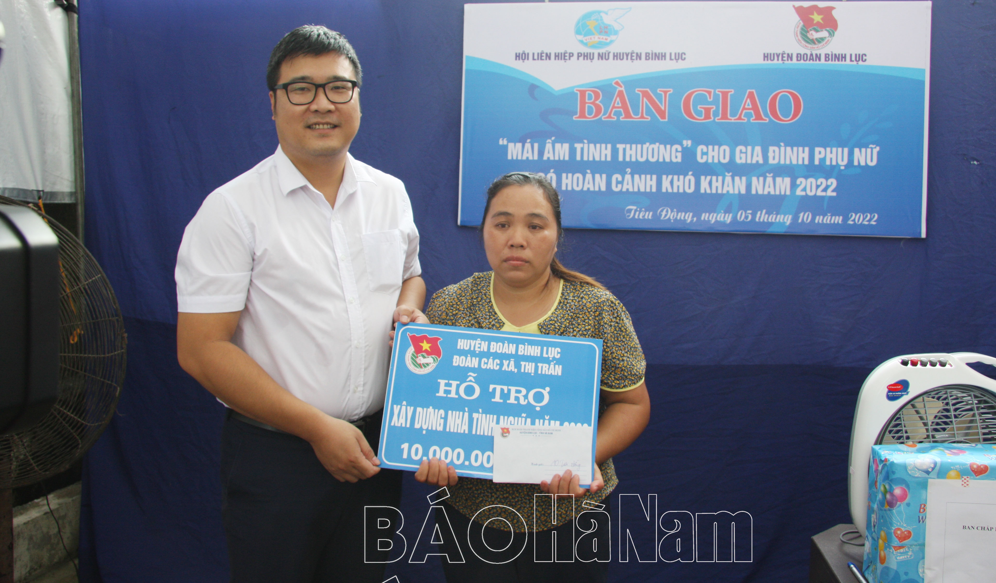 Thực hiện cuộc vận động xây dựng “Mái ấm tình thương” do Trung ương Hội Liên hiệp Phụ nữ (LHPN) Việt Nam phát động, chiều 5/10, Hội LHPN Bình Lục phối hợp với Đoàn Thanh niên cộng sản Hồ Chí Minh huyện tổ chức bàn giao “Mái ấm tình thương” cho chị Nguyễn Thị Nhạn, Chi hội Phụ nữ thôn Vũ Xá, xã Tiêu Động là hội viên có hoàn cảnh đặc biệt khó khăn.
