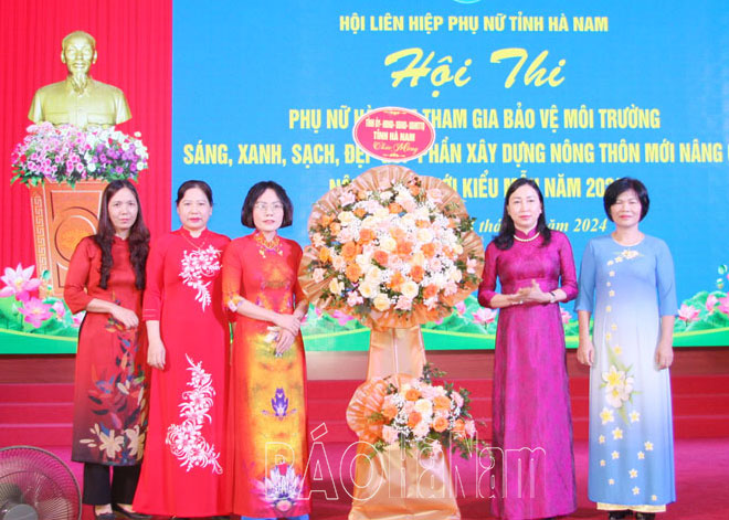 Sáng 3/6, tại Nhà văn hóa huyện Bình Lục, Hội Liên hiệp Phụ nữ (LHPN) tỉnh tổ chức Hội thi “Phụ nữ Hà Nam tham gia bảo vệ môi trường sáng, xanh, sạch đẹp góp phần xây dựng nông thôn mới (NTM) nâng cao, NTM kiểu mẫu” năm 2024. Đồng chí Đinh Thị Lụa, Phó Bí thư Thường trực Tỉnh ủy dự, chúc mừng hội thi.