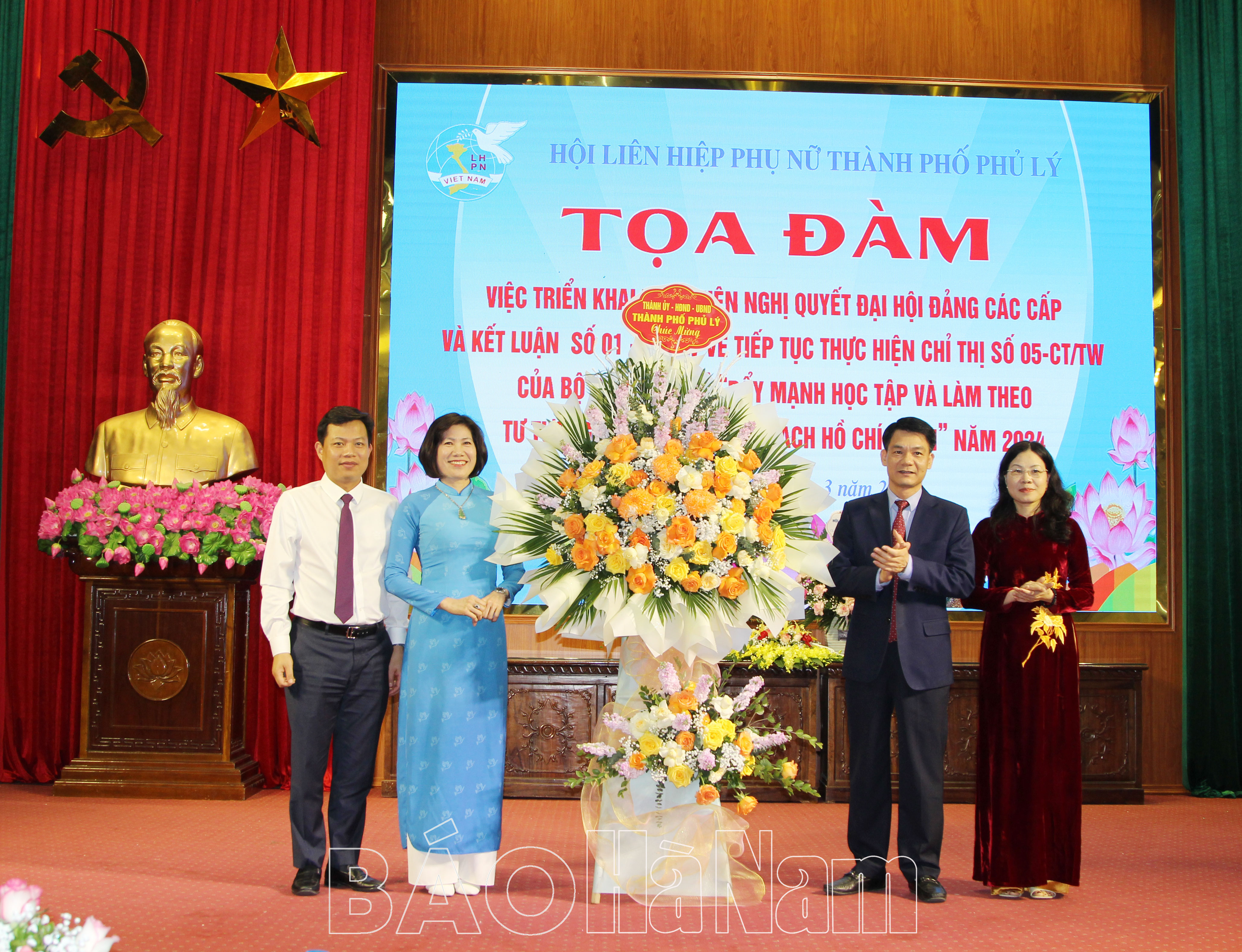 Chiều 7/3, Hội LHPN thành phố Phủ Lý tổ chức tọa đàm việc triển khai thực hiện Nghị quyết đại hội Đảng các cấp và Chỉ thị 05 của Bộ Chính trị về “Đẩy mạnh học tập và làm theo tư tưởng, đạo đức, phong cách Hồ Chí Minh” năm 2024.