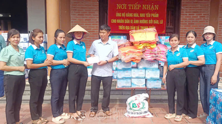 Hội LHPN huyện Thanh Liêm tặng nhu yếu phẩm cho xã Thanh Thủy.