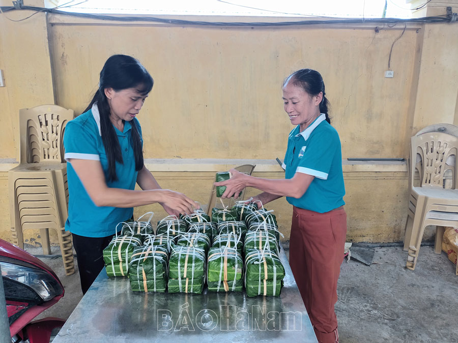 Phát huy tinh thần “tương thân tương ái”, “lá lành đùm lá rách”, cán bộ, hội viên phụ nữ trong xã đã ủng hộ gạo nếp, đậu, thịt, lá dong... gói 245 chiếc bánh chưng. Sau khi luộc chín, ngày 14/9 Hội LHPN xã sẽ tổ chức vận chuyển gửi tới người dân vùng Tây Đáy đang gặp nhiều khó khăn.