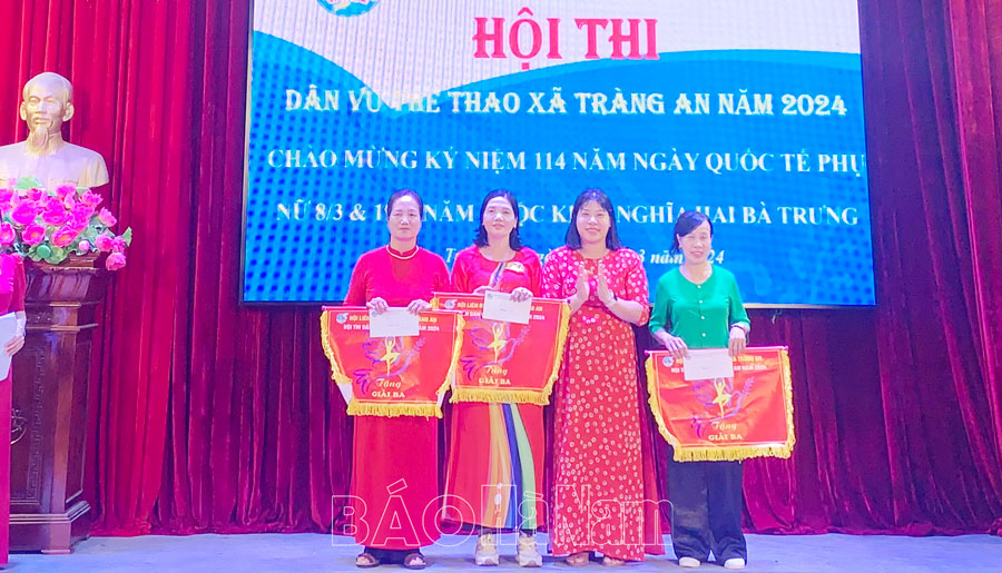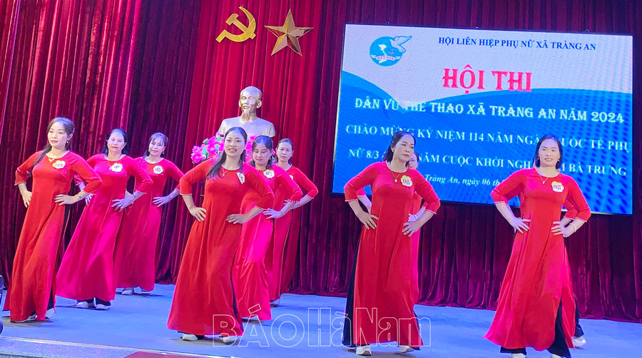 Thiết thực kỷ niệm 114 năm ngày Quốc tế Phụ nữ (8/3/1910 - 8/3/2024), 1984 năm Khởi nghĩa Hai Bà Trưng, chiều 6/3, Hội Liên hiệp Phụ nữ (LHPN) xã Tràng An (Bình Lục) tổ chức Hội thi dân vũ thể thao năm 2024 và phát động hưởng ứng Tuần lễ áo dài.