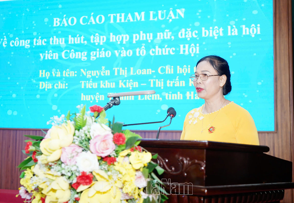Đại diện hội viên phụ nữ tham luận tại hội nghị.