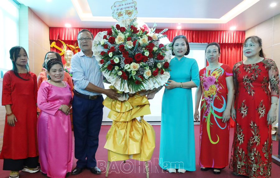 Lãnh đạo thị xã Duy Tiên tặng hoa chúc mừng CLB.