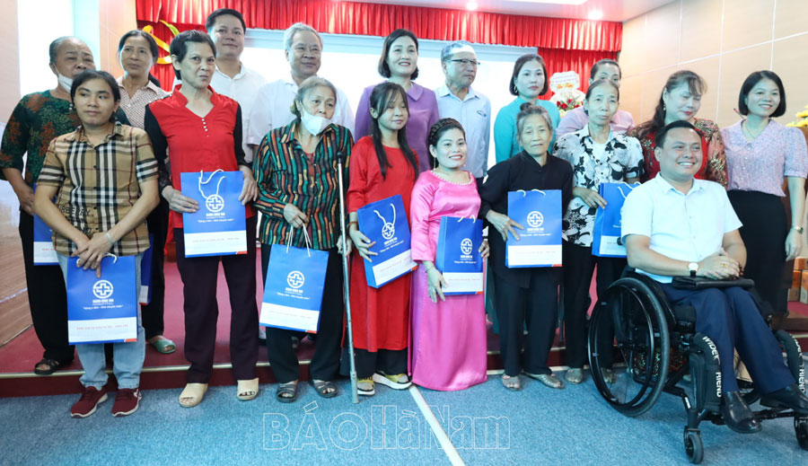 Lãnh đạo Hội Người khuyết tật thị xã Duy Tiên tặng hoa chúc mừng CLB.Lãnh đạo Thị xã , Hội Người khuyết tật tỉnh, thị xã, Hội LHPN thị xã Duy Tiên, đại diện Bệnh viện Đa khoa Hà Nội- Đồng Văn trao quà cho các thành viên CLB.