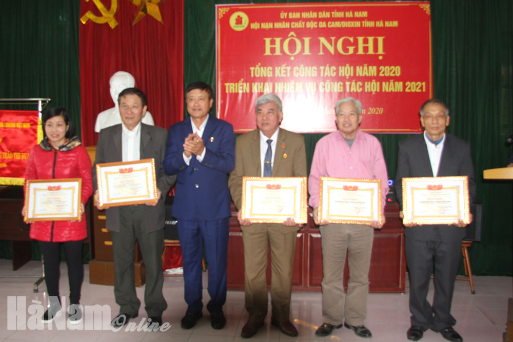 Tại hội nghị, Hội Nạn nhân chất độc da cam/dioxin tỉnh đã vinh dự được nhận Cờ đơn vị dẫn đầu phong trào thi đua năm 2020 của Trung ương hội, trao Bằng khen, Giấy khen cho 15 tập thể, cá nhân đã hoàn thành suất xắc nhiệm vụ năm 2020.
