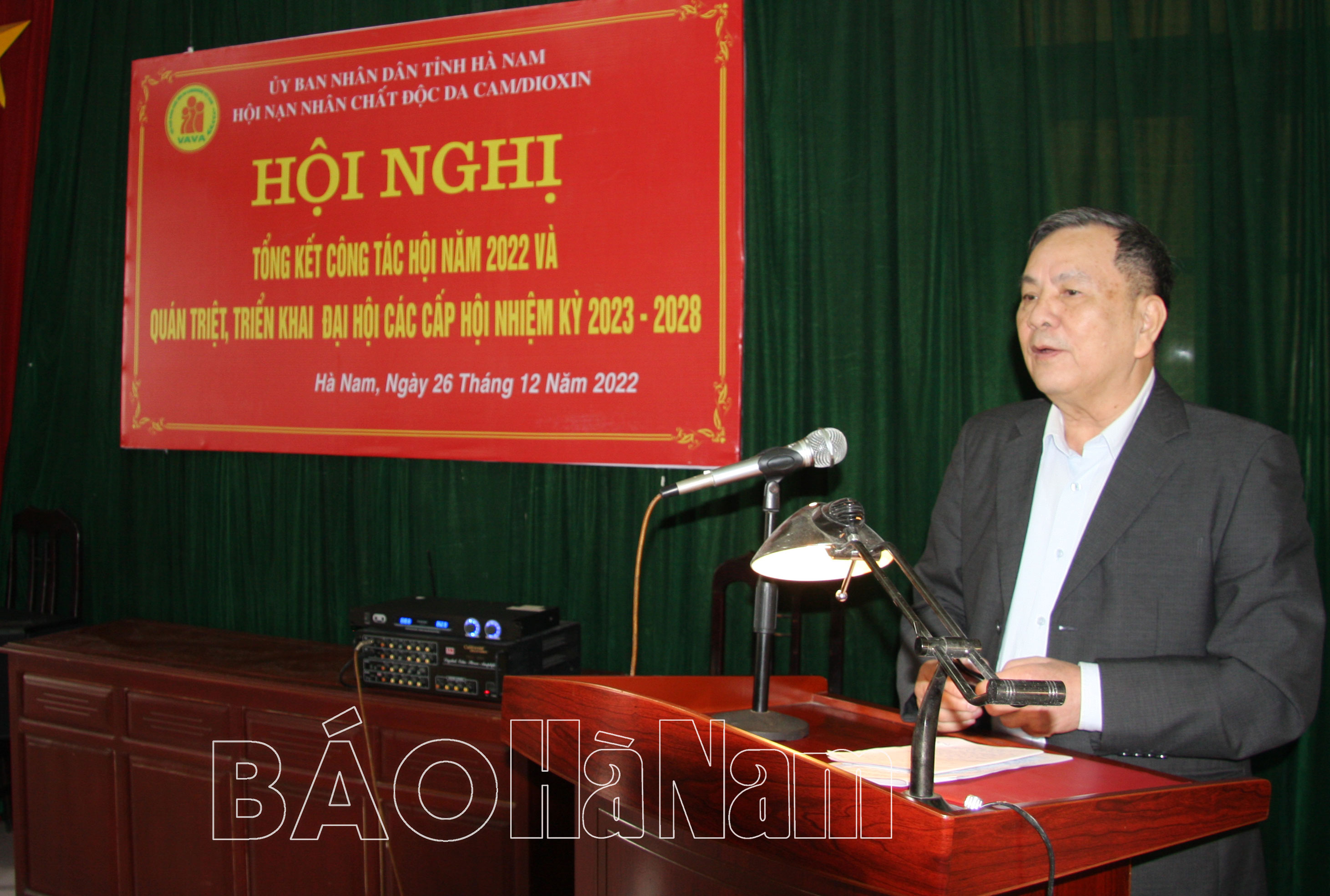 Phát biểu chỉ đạo tại hội nghị, đồng chí Nguyễn Văn Khanh, Phó Chủ tịch Hội Nạn nhân chất độc da cam/dioxin Việt Nam biểu dương, ghi nhận những kết quả mà Tỉnh hội Hà Nam đã đạt được trong năm qua. Đồng chí đề nghị thời gian tới, Hội Nạn nhân chất độc da cam/dioxin tỉnh triển khai thực hiện tốt một số nhiệm vụ trọng tâm sau: Tiếp tục quán triệt triển khai thực hiện có hiệu quả Chỉ thị số 43- CT/TW ngày 15/4/2015 của Ban Bí thư Trung ương Đảng, Thông tri số 29-TT/TU của Tỉnh ủy, Kế hoạch số 2011/KH-UBND của UBND tỉnh về tăng cường sự lãnh đạo của Đảng đối với công tác giải quyết hậu quả chất độc hóa học do Mỹ sử dụng trong chiến tranh ở Việt Nam trên địa bàn tỉnh Hà Nam; chủ động xây dựng kế hoạch chuẩn bị tốt cho đại hội ở các cấp, nhiệm kỳ 2023-2028, hướng tới Đại hội Hội Nạn nhân chất độc da cam/dioxin Việt Nam nhiệm kỳ 2023 -2028.