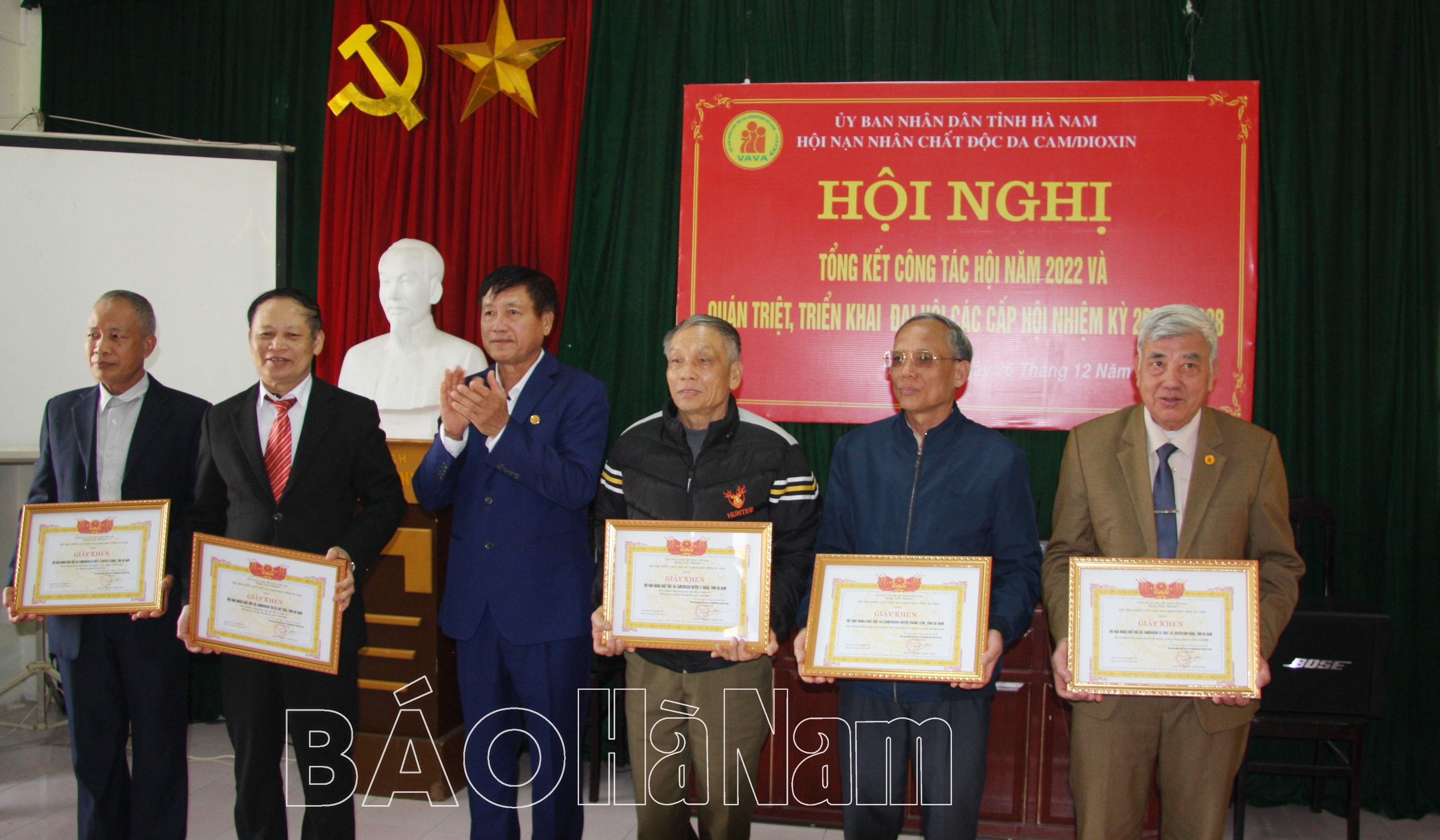 Lãnh đạo Hội Nạn nhân chất độc da cam/dioxin Việt Nam trao Bằng khen của Trung ương hội cho các cá nhân có thành tích xuất sắc công tác hội năm 2022. Lãnh đạo Hội Nạn nhân chất độc da cam/dioxin tỉnh trao giấy khen cho các tập thể, cá nhân hoàn thành xuất sắc nhiệm vụ năm 2022.