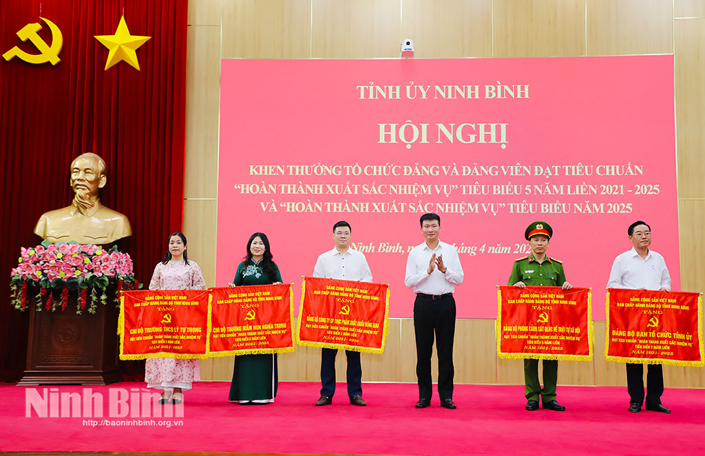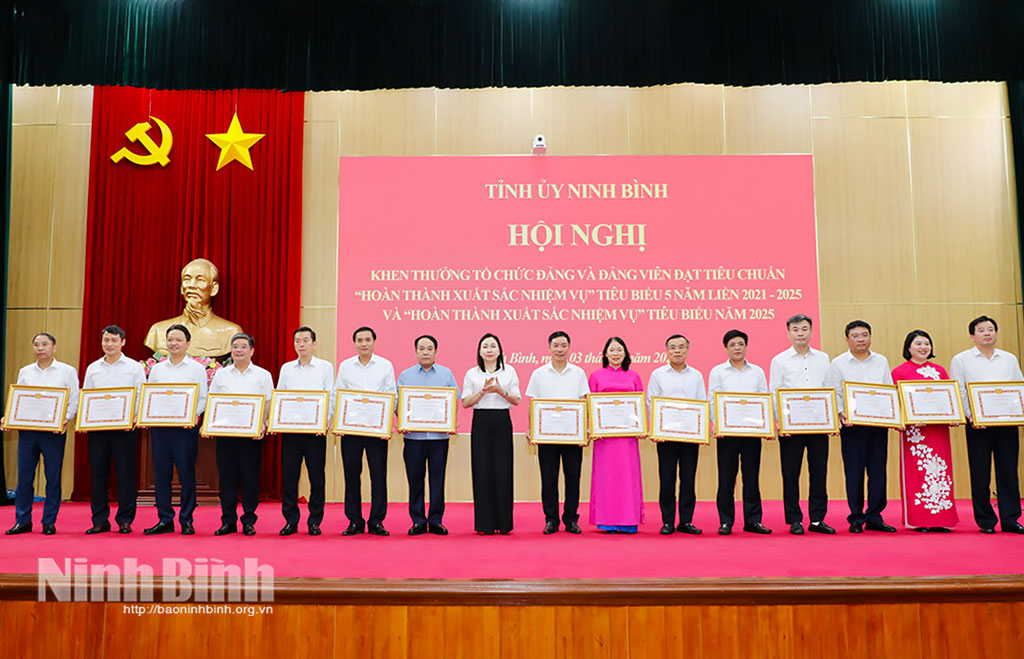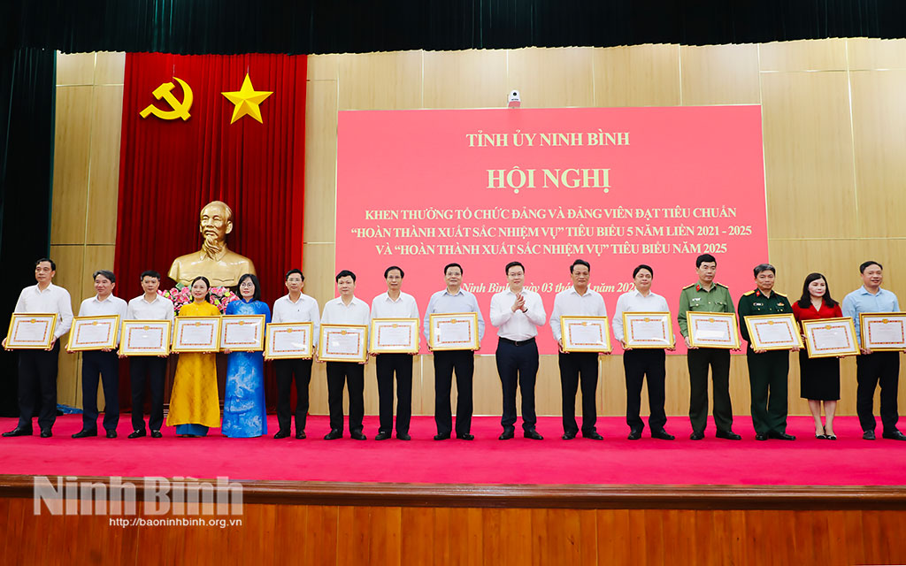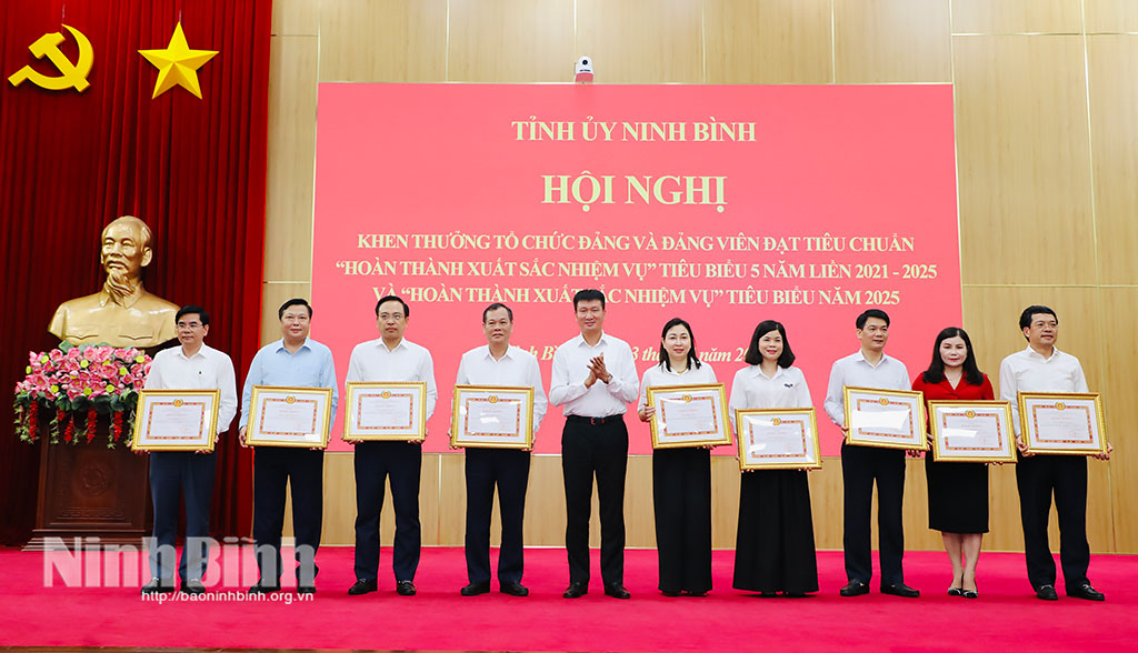 Cũng trong chương trình, hội nghị đã công bố Quyết định của Ban Thường vụ Tỉnh ủy về việc khen thưởng tổ chức đảng, đảng viên đạt tiêu chuẩn “Hoàn thành xuất sắc nhiệm vụ” tiêu biểu 5 năm liền 2021-2025 và “Hoàn thành xuất sắc nhiệm vụ” tiêu biểu năm 2025. Theo đó, có 7 tổ chức cơ sở đảng, 47 chi bộ và 143 đảng viên được khen thưởng “Hoàn thành xuất sắc nhiệm vụ” tiêu biểu 5 năm liền (2021-2025); 30 đảng bộ trực thuộc Tỉnh ủy đạt tiêu chuẩn “Hoàn thành xuất sắc nhiệm vụ” tiêu biểu năm 2025.