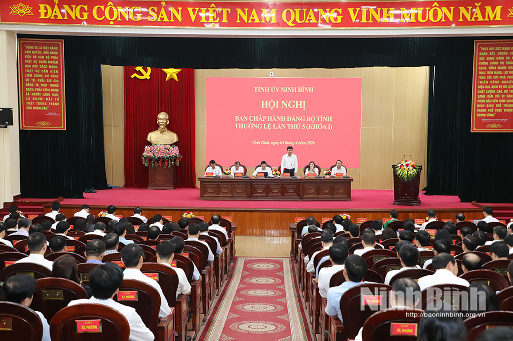 Phát biểu khai mạc hội nghị, đồng chí Bí thư Tỉnh ủy Trần Huy Tuấn cho biết: Hội nghị Ban Chấp hành lần thứ 5 diễn ra trong bối cảnh toàn Đảng bộ tỉnh đang khẩn trương triển khai thực hiện Nghị quyết Đại hội XIV của Đảng và Nghị quyết Đại hội Đảng bộ tỉnh nhiệm kỳ 2025-2030, với yêu cầu rất cao về đổi mới phương thức lãnh đạo, nâng cao năng lực tổ chức thực hiện, tạo chuyển biến rõ nét trong phát triển kinh tế - xã hội, xây dựng hệ thống chính trị trong sạch, vững mạnh. Tại hội nghị, Ban Chấp hành Đảng bộ tỉnh tập trung thảo luận, cho ý kiến vào 3 nội dung lớn, gồm: Dự thảo báo cáo kết quả công tác quý I, nhiệm vụ trọng tâm quý II năm 2026 của Tỉnh ủy; dự thảo Quy chế làm việc của Ban Chấp hành Đảng bộ tỉnh khóa I, nhiệm kỳ 2025-2030 (điều chỉnh, bổ sung); việc điều chỉnh chủ trương đầu tư Dự án xây dựng tuyến đường bộ cao tốc Ninh Bình - Hải Phòng (đoạn qua tỉnh Ninh Bình).