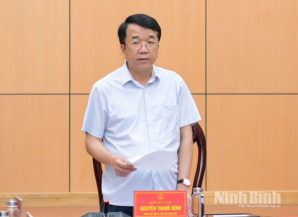Đồng chí Nguyễn Thanh Bình, Phó Bí thư Tỉnh ủy, Bí thư Đảng ủy UBND tỉnh, Chủ tịch UBND tỉnh phát biểu chỉ đạo hội nghị.
