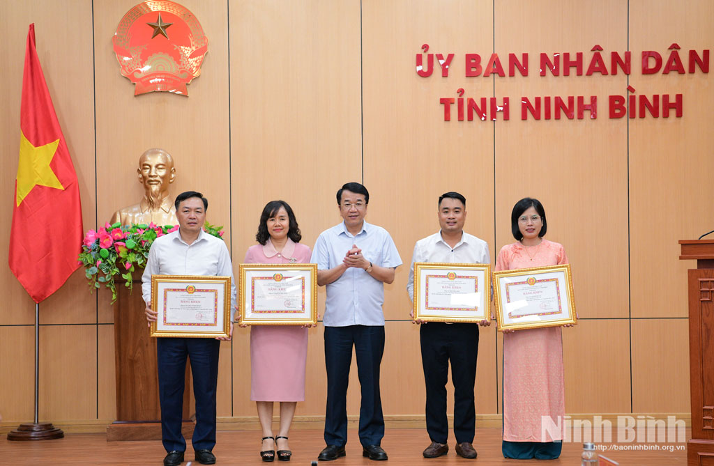 Đồng chí Nguyễn Thanh Bình, Phó Bí thư Tỉnh ủy, Bí thư Đảng ủy UBND tỉnh, Chủ tịch UBND tỉnh trao bằng khen của Ban Thường vụ Tỉnh uỷ cho các đảng viên “Hoàn thành xuất sắc nhiệm vụ’’ 5 năm liền.