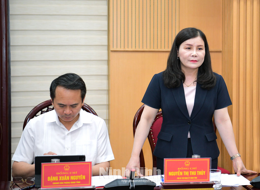 Đồng chí Nguyễn Thị Thu Thủy, Phó Bí thư Đảng ủy UBND tỉnh phát biểu tại hội nghị.