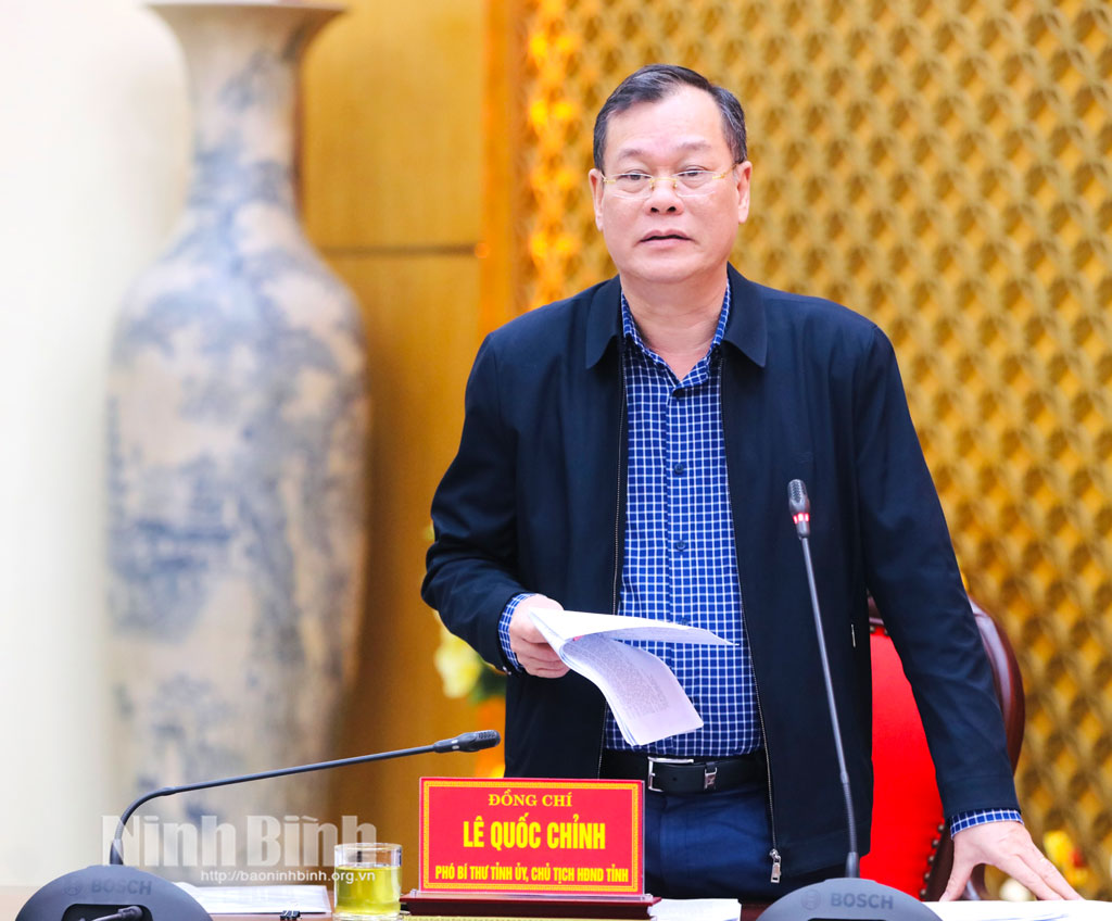 Đồng chí Lê Quốc Chỉnh, Phó Bí thư Tỉnh ủy, Chủ tịch HĐND tỉnh phát biểu tại hội nghị.