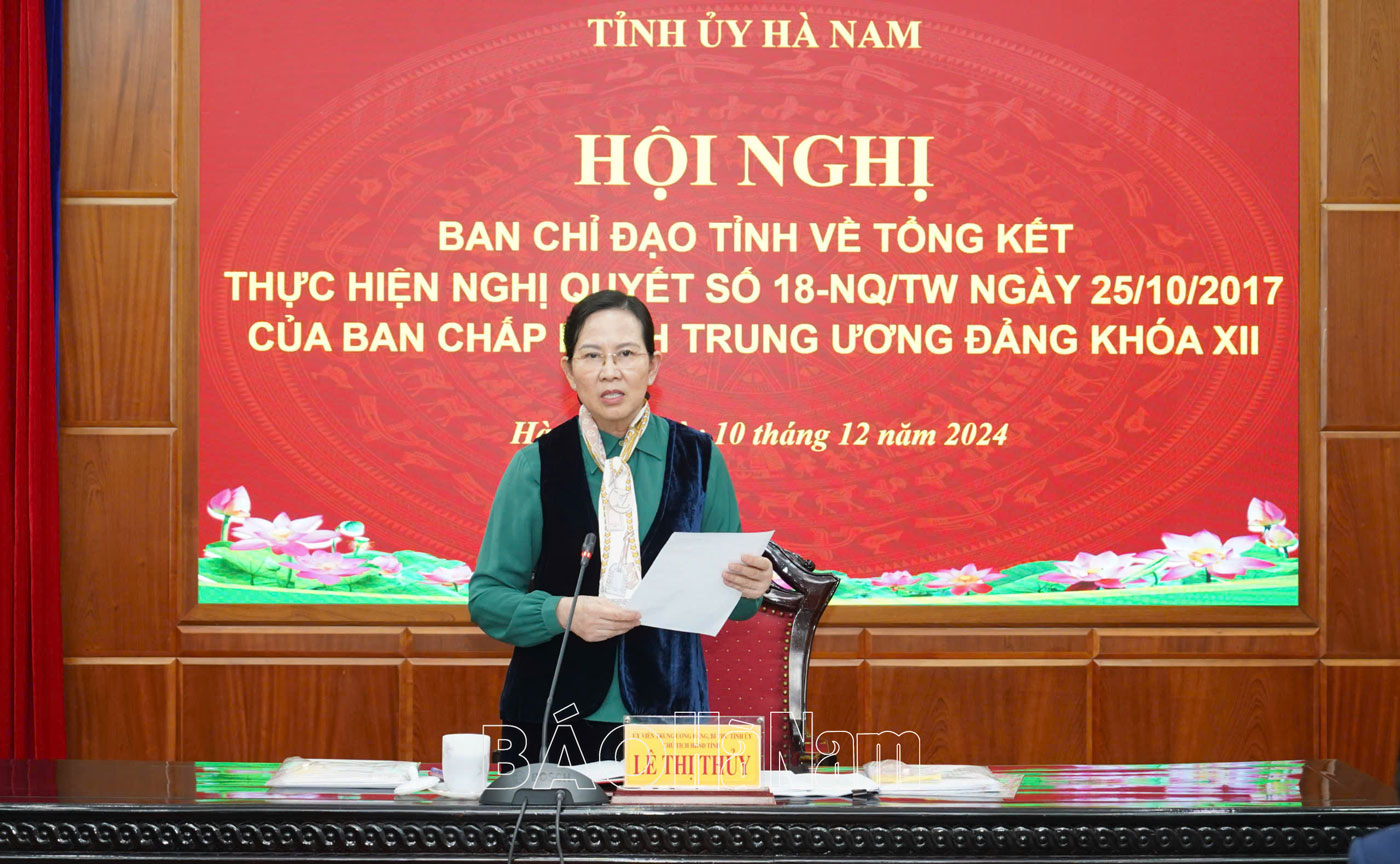Phát biểu kết luận hội nghị, đồng chí Lê Thị Thủy, Bí thư Tỉnh ủy, Chủ tịch HĐND tỉnh, Trưởng BCĐ tỉnh nhấn mạnh: Các địa phương, cơ quan, đơn vị cần tập trung giải quyết yêu cầu, nhiệm vụ trọng tâm, cấp bách, đặc biệt là triển khai thực hiện khẩn trương, hiệu quả "cuộc cách mạng tinh gọn tổ chức bộ máy của cả hệ thống chính trị" theo tinh thần Nghị quyết số 18 của BCH Trung ương Đảng khóa XII. Đồng chí Bí thư Tỉnh ủy, Trưởng BCĐ giao các thành viên BCĐ, Tổ biên tập tiếp thu ý kiến đóng góp tại hội nghị; tiếp tục rà soát, hoàn thiện đề án bảo đảm nguyên tắc theo đúng chỉ đạo của Trung ương, bảo đảm tinh gọn bộ máy, tinh giản con người nhưng hoạt động hiệu quả hơn. Đồng thời, đẩy mạnh tuyên truyền, vận động, làm tốt công tác tư tưởng; bảo đảm chế độ chính sách cho CBCCVC bị ảnh hưởng do quá trình sắp xếp tinh gọn tổ chức, bộ máy.