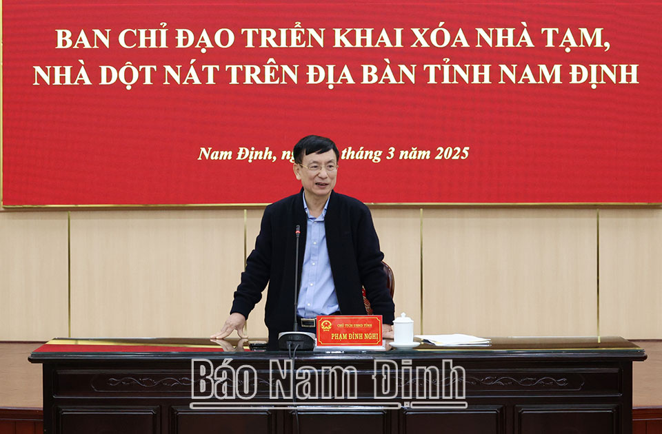 Sáng 19/3, UBND tỉnh tổ chức hội nghị Ban Chỉ đạo triển khai xóa nhà tạm, nhà dột nát trên địa bàn tỉnh Nam Định (Ban Chỉ đạo). Đồng chí Phạm Đình Nghị, Phó Bí thư Tỉnh ủy, Chủ tịch UBND tỉnh, Phó Trưởng Ban Thường trực Ban Chỉ đạo chủ trì hội nghị.