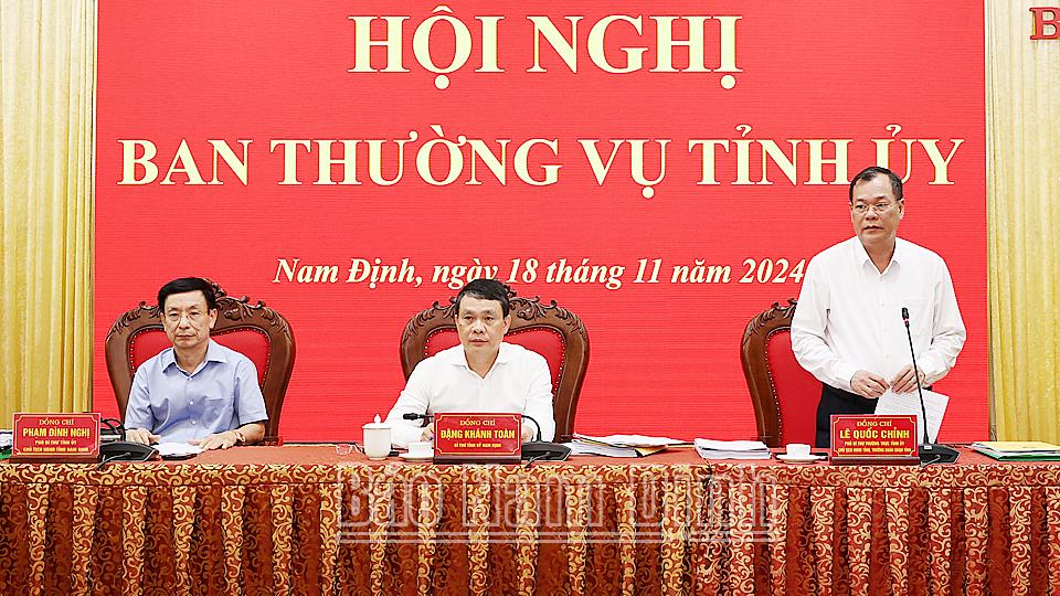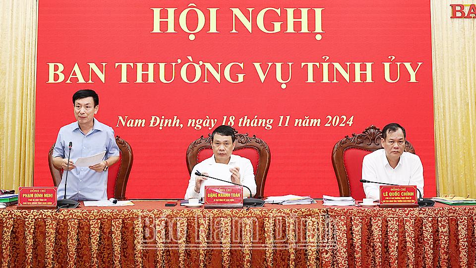 Phát biểu kết luận hội nghị, đồng chí Bí thư Tỉnh ủy Đặng Khánh Toàn đánh giá cao công tác chuẩn bị kỹ lưỡng, công phu và cơ bản nhất trí với các nội dung dự thảo nghị quyết, báo cáo, đề án, tờ trình của Ban cán sự đảng UBND tỉnh, của các cơ quan có liên quan trình tại hội nghị. Đồng chí Bí thư Tỉnh uỷ nhấn mạnh, năm 2025 là năm có ý nghĩa đặc biệt quan trọng, năm cuối thực hiện kế hoạch phát triển kinh tế - xã hội 5 năm 2021-2025, năm tổ chức đại hội đảng bộ các cấp tiến tới Đại hội đại biểu toàn quốc lần thứ XIV của Đảng; qua đó cấp uỷ, chính quyền các cấp cần nỗ lực, quyết tâm cao phấn đấu thực hiện thắng lợi toàn diện các mục tiêu, nhiệm vụ của năm 2025; hoàn thành và hoàn thành vượt mức các chỉ tiêu kinh tế - xã hội 5 năm 2021-2025 theo Nghị quyết Đại hội Đảng bộ tỉnh lần thứ XX đã đề ra, tạo tiền đề thuận lợi cho tỉnh Nam Định bước vào giai đoạn phát triển mới. Cụ thể, tỉnh cần phấn đấu thực hiện hiệu quả, thực chất, cơ cấu lại các ngành sản xuất, dịch vụ, đổi mới và nâng cao năng suất, chất lượng, hiệu quả, sức cạnh tranh, phát triển nhanh, bền vững của nền kinh tế. Phấn đấu năm 2025, có 100% xã, thị trấn đạt chuẩn NTM nâng cao; huyện Giao Thủy được công nhận đạt chuẩn NTM kiểu mẫu lĩnh vực giáo dục; triển khai đồng bộ Chương trình mỗi xã một sản phẩm OCOP và tăng cường giá trị thương mại của các sản phẩm OCOP. Tập trung thu hút, phát triển các ngành công nghiệp có công nghệ hiện đại, giá trị gia tăng cao, phát triển xanh, bền vững, có khả năng đóng góp lớn cho nguồn thu ngân sách của tỉnh; đẩy mạnh công tác xúc tiến thương mại, tạo điều kiện thuận lợi cho các doanh nghiệp tìm kiếm, mở rộng thị trường xuất khẩu, tiêu thụ sản phẩm; tăng cường công tác xúc tiến, quảng bá, khai thác có hiệu quả, bền vững các loại hình và sản phẩm du lịch là thế mạnh của tỉnh. Nâng cao chất lượng công tác quy hoạch và tổ chức quản lý, thực hiện tốt các quy hoạch; tập trung đầu tư, hoàn thiện kết cấu hạ tầng kinh tế - xã hội phục vụ nhu cầu phát triển kinh tế; trong đó, tiếp tục tập trung thực hiện tốt các nội dung Quy hoạch tỉnh thời kỳ 2021-2030, tầm nhìn đến năm 2050; Đề án thành lập Khu kinh tế Ninh Cơ; các quy hoạch liên vùng huyện; quy hoạch chung đô thị; quy hoạch phân khu, quy hoạch chi tiết... đã được phê duyệt. Đôn đốc đẩy nhanh tốc độ công tác giải phóng mặt bằng, tiến độ thực hiện các dự án, công trình trọng điểm của tỉnh; phấn đấu hoàn thành trước Đại hội Đảng bộ tỉnh lần thứ XXI các dự án: Tuyến đường bộ mới Nam Định - Lạc Quần - Đường bộ ven biển; Bệnh viện Đa khoa tỉnh; cầu vượt sông Đáy nối tỉnh Ninh Bình và tỉnh Nam Định...