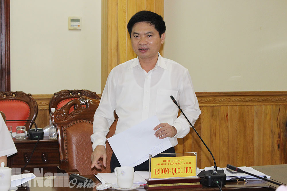 Đồng chí Trương Quốc Huy, Phó Bí thư Tỉnh ủy, Chủ tịch UBND tỉnh phát biểu tại hội nghị
