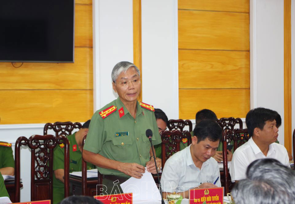 Đại tá Tô Anh Dũng - Uỷ viên BTV Tỉnh uỷ, Bí thư Đảng uỷ, Giám đốc Công an tỉnh phát biểu tại Hội nghị.