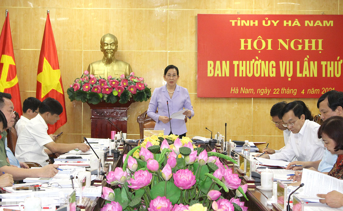 Về chủ trương thực hiện các trình tự, thủ tục thành lập CCN Yên Lệnh, ngày 15/4/2020, Công ty Cổ phần cảng Quốc tế Hà Nam đã được UBND tỉnh quyết định chủ trương đầu tư Dự án xây dựng Cụm cảng Yên lệnh Hà Nam tại xã Chuyên Ngoại (Duy Tiên), với quy mô diện tích 62,99 ha, tổng mức đầu tư trên 2.625 tỷ đồng với chức năng là cảng thủy nội địa và cung cấp các dịch vụ logictics phục vụ nhu cầu giao nhận, xếp dỡ, lưu kho và phân phối hàng hóa, thông quan hàng hóa nội địa và xuất, nhập khẩu; là đầu mối giao thông, giao nhận vận tải đa phương thức của khu vực; cung cấp các dịch vụ hậu cần phục vụ hoạt động của cụm cảng và các hãng vận tải. Đến nay, dự án đang triển khai công tác thu hồi đất, GPMB và hoàn thiện các thủ tục đầu tư theo quy định. Ngày 15/4/2021, Công ty cổ phần Cảng Quốc tế Hà Nam có văn bản đề nghị thành lập CCN Yên Lệnh, khu vực giáp Cụm cảng Yên Lệnh Hà Nam nhằm khai thác hiệu quả cụm cảng Yên Lệnh khi đi vào hoạt động. Do vậy, BCS Đảng UBND tỉnh đề nghị BTV Tỉnh ủy đồng ý chủ trương cho phép triển khai thực hiện các trình tự, thủ tục thành lập CCN Yên Lệnh. Thảo luận cho ý kiến vào nội dung này, các đại biểu đều có chung nhận định, việc thành lập CCN Yên Lệnh là hết sức cần thiết cho phát triển của tỉnh. Tuy nhiên, để thành lập CCN Yên Lệnh cần rà soát, xác định được chỉ tiêu đất hiện còn có đáp ứng với yêu cầu, đảm bảo cho việc triển khai dự án đạt hiệu quả phù hợp định hướng phát triển chung của tỉnh.
