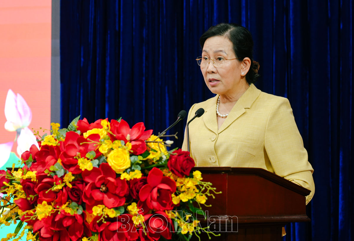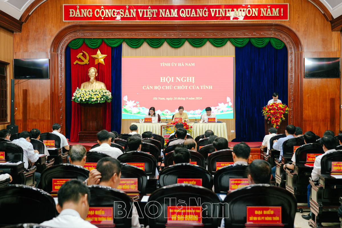 Phát biểu chỉ đạo hội nghị, đồng chí Bí thư Tỉnh ủy Lê Thị Thủy nhấn mạnh: Để chuẩn bị một bước nhân sự cho Đại hội Đảng bộ tỉnh lần thứ XXI, nhiệm kỳ 2025-2030 và căn cứ vào tình hình cán bộ, BTV Tỉnh uỷ đã họp thống nhất chủ trương kiện toàn 1 đồng chí Ủy viên BTV Tỉnh ủy cơ cấu là bí thư thị uỷ, huyện uỷ. BTV Tỉnh uỷ, BCH Đảng bộ tỉnh đã họp thực hiện các bước theo đúng quy định về công tác cán bộ và định hướng cơ cấu 1 đồng chí Ủy viên BTV Tỉnh uỷ là Bí thư Thị uỷ Duy Tiên.
