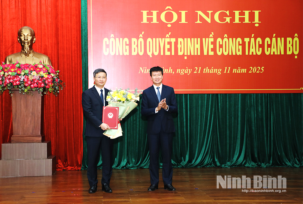 Lãnh đạo Sở Nội vụ công bố Quyết định của Chủ tịch UBND tỉnh về việc tiếp nhận, bổ nhiệm đồng chí Lê Văn Cường, Tỉnh ủy viên, Phó Bí thư Đảng ủy UBND tỉnh giữ chức Chánh Thanh tra tỉnh. Thời hạn bổ nhiệm là 5 năm kể từ ngày 21/11/2025.
