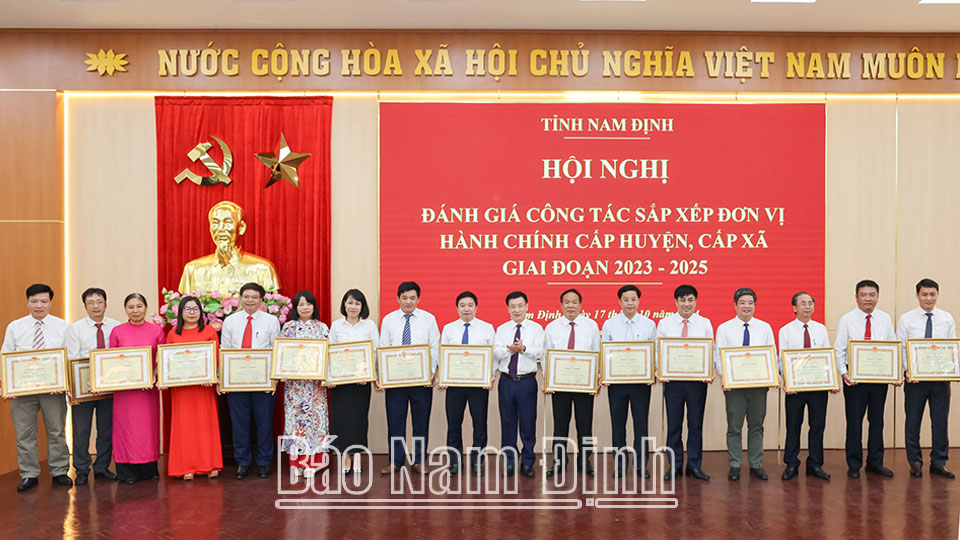 Chiều 17/10, tỉnh Nam Định tổ chức hội nghị đánh giá công tác sắp xếp đơn vị hành chính (ĐVHC) cấp huyện, cấp xã giai đoạn 2023-2025 của tỉnh.