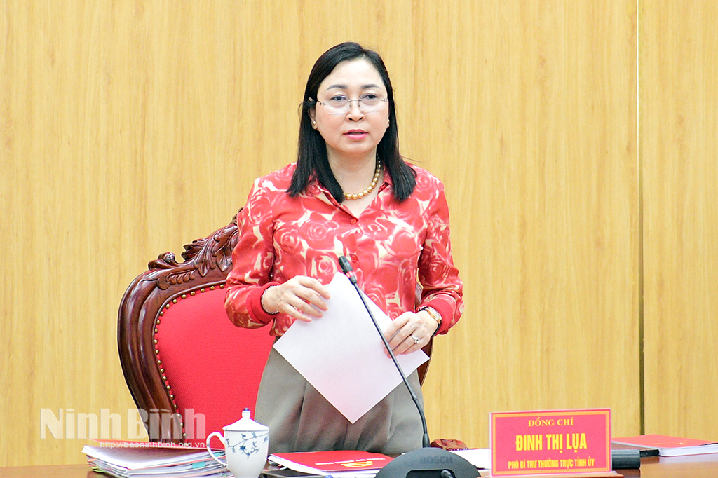 Đồng chí Đinh Thị Lụa, Phó Bí thư Thường trực Tỉnh ủy phát biểu kết luận hội nghị.