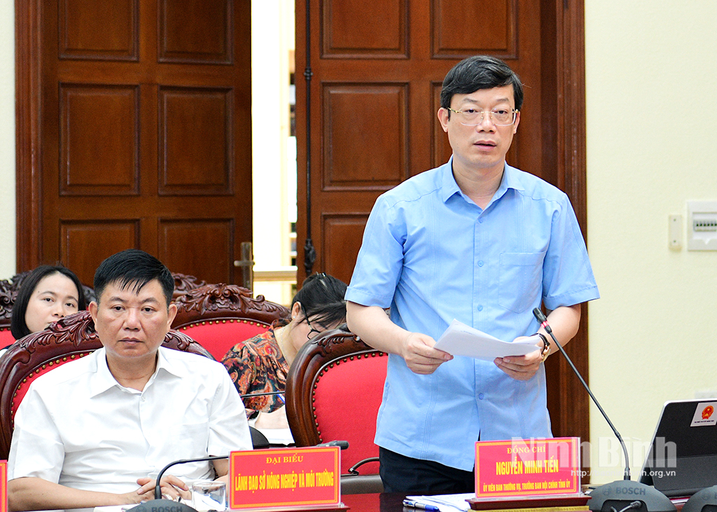 Đồng chí Nguyễn Minh Tiến, Ủy viên Ban Thường vụ Tỉnh ủy, Trưởng Ban Nội chính Tỉnh ủy phát biểu tại hội nghị.