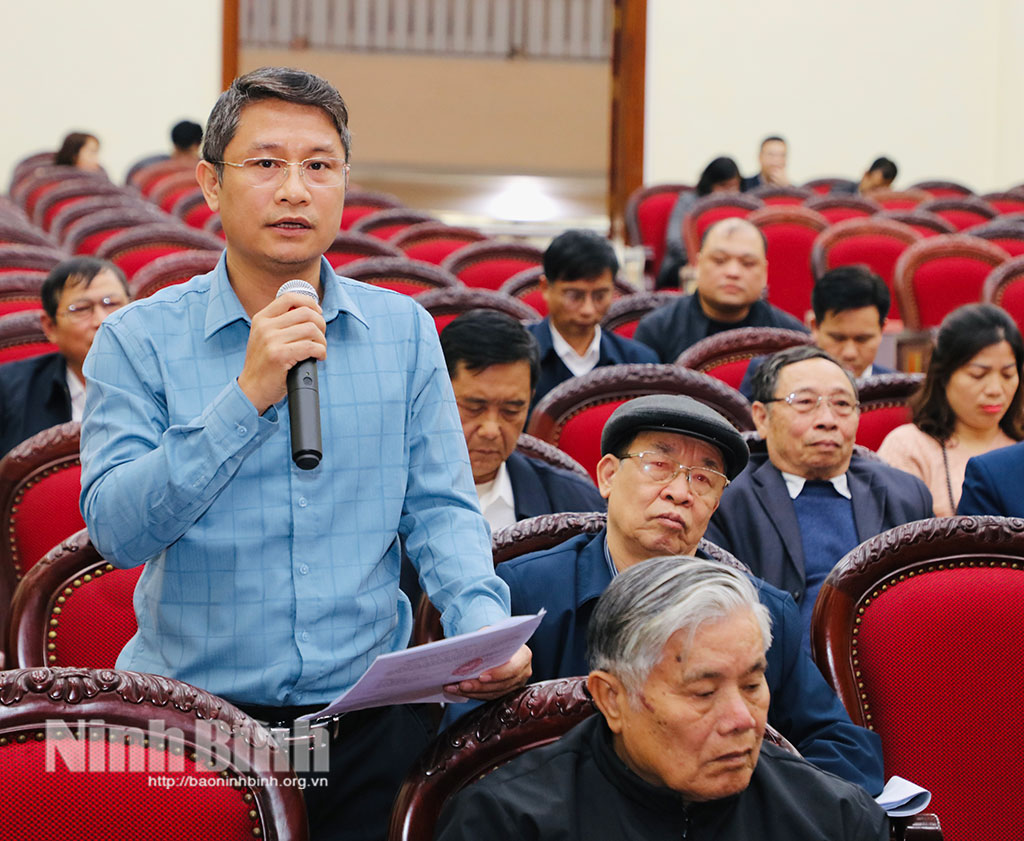 Đại biểu thảo luận tại hội nghị.Các đại biểu biểu quyết thống nhất danh sách sơ bộ người được giới thiệu ứng cử đại biểu HĐND tỉnh Ninh Bình khóa XVI, nhiệm kỳ 2026-2031.