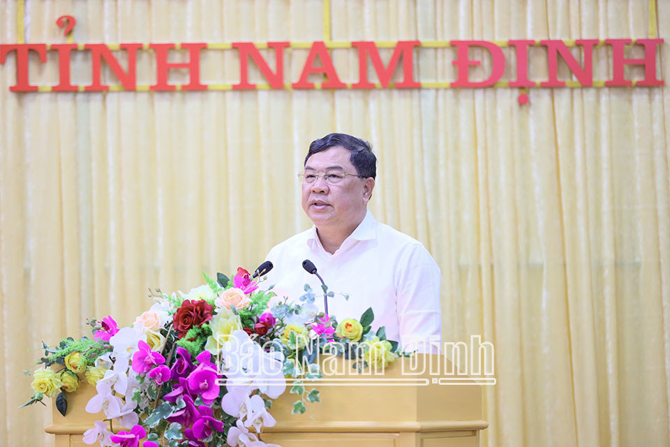 Phát biểu kết luận hội nghị, đồng chí Bí thư Tỉnh ủy ghi nhận, biểu dương và đánh giá cao những kết quả đạt được trong thực hiện nhiệm vụ chính trị của tỉnh 6 tháng đầu năm 2023. Mặc dù còn nhiều khó khăn song dưới sự lãnh đạo, chỉ đạo quyết liệt của BCH, Ban TVTU, sự nỗ lực cố gắng của cấp uỷ, chính quyền và các tầng lớp nhân dân cùng sự ủng hộ của cộng đồng doanh nghiệp, kinh tế xã hội của tỉnh tiếp tục giữ vững ổn định và có bước phát triển. Bên cạnh công tác xây dựng Đảng và hệ thống chính trị, điểm sáng trong 6 tháng đầu năm là phát triển kinh tế, thu hút đầu tư, trong đó đã tạo được niềm tin và kêu gọi được nhiều nhà đầu tư nước ngoài đến tìm hiểu, ký kết đầu tư với số vốn lớn, công nghệ cao, thân thiện với môi trường. Tuy nhiên bên cạnh những kết quả đã đạt được cũng cần thẳng thắn chỉ ra một số hạn chế để khắc phục trong thời gian tới trong đó có chỉ tiêu về thu ngân sách còn thấp. Đồng chí Bí thư Tỉnh uỷ đã nhấn mạnh một số nhiệm vụ trọng tâm cần tiếp tục triển khai trong 6 tháng cuối năm, trong đó đề nghị các cấp uỷ quan tâm thực hiện tốt công tác xây dựng Đảng, xây dựng hệ thống chính trị, coi đây là nhiệm vụ then chốt. Theo đó, tỉnh sẽ tập trung xây dựng chương trình hành động bổ sung về công tác xây dựng, chỉnh đốn Đảng; tổ chức lấy phiếu tín nhiệm giữa nhiệm kỳ đối với các đồng chí Ủy viên Ban TVTU; tiếp tục cụ thể hóa các nghị quyết, chỉ thị, kết luận của Trung ương gắn với tình hình thực tế ở địa phương. Sau khi sơ kết nghị quyết giữa nghiệm kỳ, nhất là 6 nghị quyết chuyên đề của Tỉnh ủy, đánh giá đúng những việc đã làm được, xác định những hạn chế để đề ra giải pháp tiếp tục thực hiện hiệu quả trong thời gian tới. Đối với các tổ chức Đảng cơ sở, tiếp tục thực hiện đầy đủ hoạt động Bí thư cấp ủy đối thoại trực tiếp với công dân; phân định rõ trách nhiệm, nghĩa vụ của các cơ quan, đơn vị, địa phương trong xử lý đơn thư, khiếu nại, tố cáo. Nâng cao hiệu quả công tác phòng chống tham nhũng, tiêu cực, lãng phí; hoạt động dân vận, nhất là công tác vận động nhân dân, đoàn kết lương giáo, đoàn kết các tầng lớp nhân dân. Tập trung tổ chức thành công đại hội MTTQ và các đoàn thể chính trị như: Công đoàn, Hội Nông dân cấp tỉnh. Đồng thời làm tốt công tác quy hoạch cấp tỉnh gắn với chỉ đạo của Trung ương về sáp nhập huyện, xã, phường không đủ tiêu chí. Tiếp tục đầu tư, xây dựng Khu kinh tế Ninh cơ, các khu, cụm công nghiệp; nhất là thu hút nhà đầu tư thứ cấp. Hạn chế tối đa việc đầu tư ngoài khu công nghiệp, cụm công nghiệp vì ảnh hưởng đến môi trường. Quan tâm, thực hiện tốt công tác giải phóng mặt bằng các công trình, dự án trọng điểm; phát huy vai trò của người đứng đầu cấp ủy, chính quyền. Khuyến khích, tạo điều kiện cho cán bộ dám nghĩ, dám làm vì sự phát triển chung của tỉnh. Trước mắt tập trung triển khai xây dựng hệ thống thủy lợi ở huyện Ý Yên; Dự án xử lý nước thải; đẩy mạnh cải tạo chung cư cũ, xây dựng nhà ở xã hội, nhà ở cho chuyên gia để chỉnh trang đô thị ở thành phố Nam Định; bảo đảm an ninh, an toàn cho người dân. Tranh thủ sự ủng hộ của Trung ương trong việc thực hiện các dự án, công trình lớn, trọng điểm. Chú trọng các lĩnh vực văn hóa, xã hội, thể dục thể thao kết hợp đẩy mạnh phát triển du lịch tâm linh, du lịch biển. Thực hiện tốt chính sách với người có công. Phát huy những kết quả đã đạt được trong giáo dục, đào tạo, xây dựng NTM nâng cao, kiểu mẫu. Thực hiện nghiêm chế độ thường trực, sẵn sàng chiến đấu, không để bị động, bất ngờ. Quan tâm nhiều hơn đến an ninh nông thôn, an ninh vùng giáo, an ninh khu công nghiệp, an ninh truyền thông, an ninh cho người dân, các chuyên gia, du khách về Nam Định. Tiếp tục kéo giảm tội phạm, kéo giảm tai nạn giao thông; không để điểm nóng, vùng nóng phát sinh; không ngừng nâng cao đời sống vật chất, tinh thần của cán bộ, đảng viên và nhân dân. Phấn đấu hoàn thành vượt mức các chỉ tiêu phát triển kinh tế-xã hội năm bản lề 2023; tạo tiền đề tăng tốc trong năm 2024/.