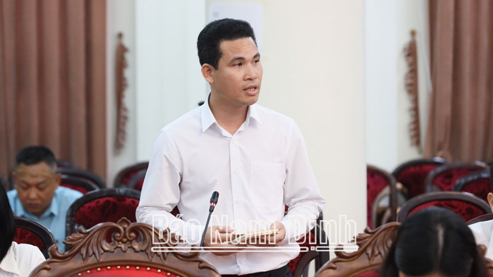 | Đồng chí Phạm Duy Hưng, TUV, Chủ tịch UBND Thành phố Nam Định phát biểu tại hội nghị. |