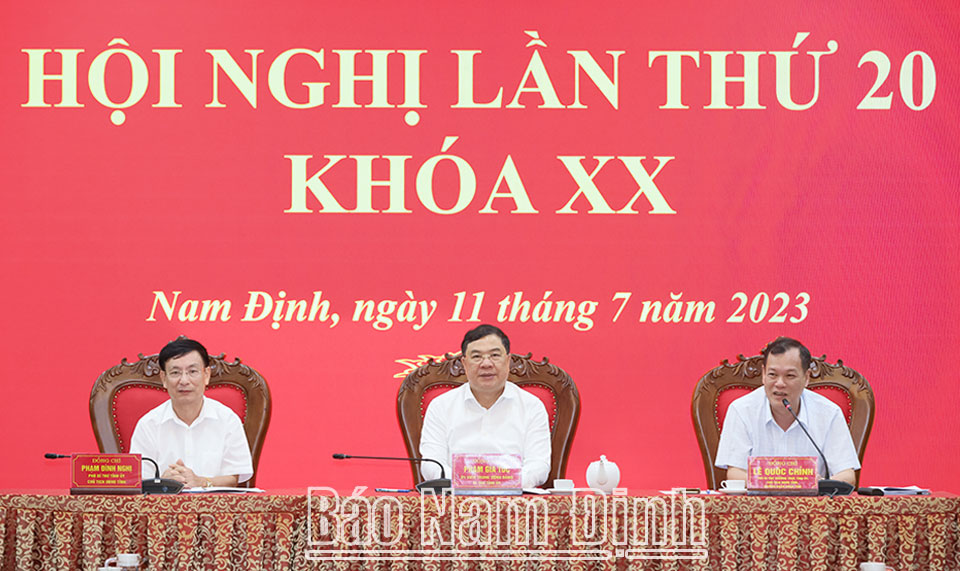 Các đồng chí: Phạm Gia Túc, Ủy viên BCH Trung ương Đảng, Bí thư Tỉnh ủy; Lê Quốc Chỉnh, Phó Bí thư Thường trực Tỉnh ủy, Chủ tịch HĐND tỉnh, Trưởng đoàn Đoàn đại biểu Quốc hội tỉnh; Phạm Đình Nghị, Phó Bí thư Tỉnh ủy, Chủ tịch UBND tỉnh chủ trì hội nghị. Dự hội nghị có các đồng chí đại diện các Ban Đảng Trung ương; các đồng chí Ủy viên Ban TVTU, Ủy viên BCH Đảng bộ tỉnh; lãnh đạo các sở, ban, ngành, đoàn thể của tỉnh; các huyện và thành phố Nam Định.