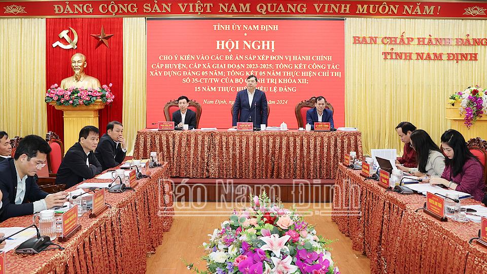 Chiều 11-3, BCH Đảng bộ tỉnh khóa XX, nhiệm kỳ 2020-2025 tổ chức hội nghị lần thứ 28 cho ý kiến dự thảo các báo cáo tổng kết công tác xây dựng Đảng 5 năm (2020-2025); báo cáo 15 năm thực hiện Điều lệ Đảng (2011-2025); Đề án mở rộng địa giới hành chính thành phố Nam Định và thành lập 3 phường thuộc thành phố Nam Định mở rộng; Đề án sắp xếp đơn vị hành chính cấp xã tỉnh Nam Định giai đoạn 2023-2025 và một số nội dung quan trọng khác.