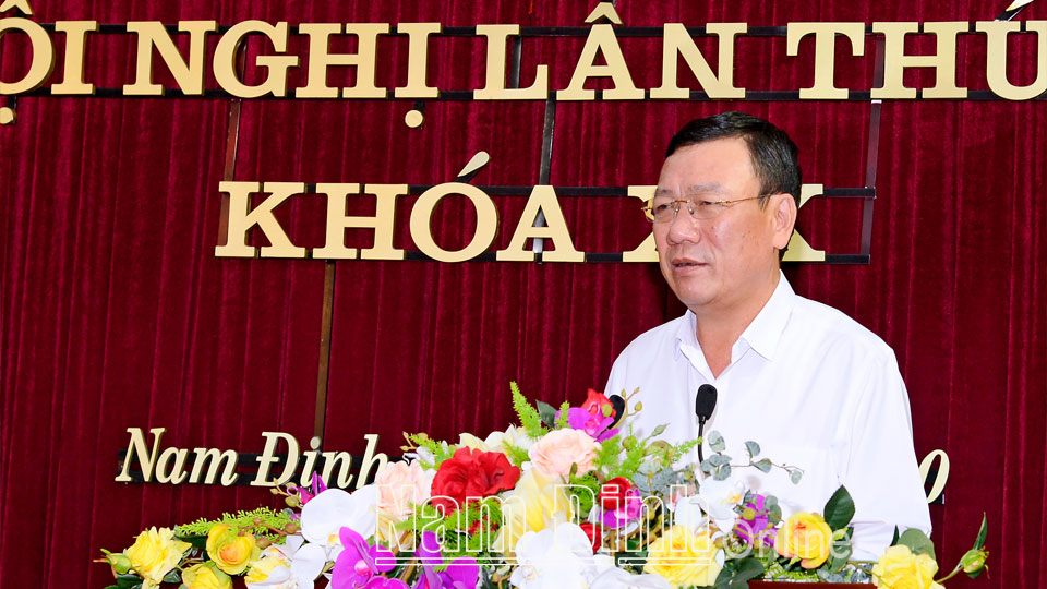 Phát biểu kết luận hội nghị, đồng chí Bí thư Tỉnh ủy Đoàn Hồng Phong đánh giá cao kết quả Đảng bộ, chính quyền, nhân dân trong tỉnh đạt được trong năm 2020; đồng thời chỉ rõ những hạn chế, tồn tại cần khắc phục để kinh tế - xã hội tỉnh nhà phát triển nhanh hơn thời gian tới. Về phương hướng, nhiệm vụ trọng tâm năm 2021, đồng chí Bí thư Tỉnh ủy yêu cầu các cấp ủy đảng, cơ quan, đơn vị, địa phương cần phấn đấu hoàn thành và hoàn thành vượt mức các mục tiêu, nhiệm vụ về phát triển kinh tế - xã hội đã đề ra; tập trung làm tốt công tác chuẩn bị và tổ chức thành công cuộc bầu cử Quốc hội khóa XV, bầu cử HĐND các cấp nhiệm kỳ 2021-2026. BCH Đảng bộ tỉnh tập trung xây dựng, ban hành các nghị quyết chuyên đề toàn khóa XX (nhiệm kỳ 2020-2025); trong đó có Nghị quyết về xây dựng nông thôn mới, nâng cao, kiểu mẫu; Nghị quyết về tập trung xây dựng, phát triển thành phố Nam Định; Nghị quyết về xây dựng, phát triển vùng kinh tế biển; Nghị quyết về đẩy mạnh cải cách hành chính, nâng cao năng lực cạnh tranh, xúc tiến và thu hút đầu tư. Tập trung triển khai lập kế hoạch sử dụng đất 5 năm (2021-2025) cấp tỉnh; quy hoạch sử dụng đất cấp huyện thời kỳ 2021-2030 và kế hoạch sử dụng đất năm 2021 theo quy định. Tiếp tục thực hiện nghiêm Kết luận số 43 của Tỉnh ủy về quản lý đất đai; xử lý nghiêm các tổ chức, cá nhân vi phạm theo quy định. Tập trung chỉ đạo, đôn đốc, đẩy nhanh tiến độ các dự án, công trình trọng điểm như: Dự án tuyến đường bộ đoạn qua tỉnh Nam Định; Nhà máy nhiệt điện BOT Nam Định I; Bệnh viện Đa khoa tỉnh; Tỉnh lộ 485B, 487B, 488C. Hoàn thành giai đoạn I, khởi công giai đoạn II dự án xây dựng đường trục phát triển nối vùng kinh tế biển tỉnh Nam Định với đường cao tốc Cầu Giẽ - Ninh Bình; dự án xây dựng Trường THPT chuyên Lê Hồng Phong tại địa điểm mới; dự án xây dựng trụ sở Thành ủy, HĐND, UBND thành phố Nam Định... Tập trung thực hiện tốt nhiệm vụ thu ngân sách Nhà nước năm 2021 trên địa bàn, bảo đảm hoàn thành và hoàn thành vượt mức kế hoạch đề ra. Tiếp tục duy trì, phát triển các lĩnh vực văn hóa - xã hội, phấn đấu tỷ lệ dân số tham gia bảo hiểm y tế đạt từ 92% trở lên. Đảm bảo tốt an ninh chính trị, trật tự an toàn xã hội. Quan tâm công tác an sinh xã hội. Trước mắt chỉ đạo chuẩn bị tốt việc phục vụ nhân dân đón Tết Nguyên đán Tân Sửu 2021 vui tươi, an toàn, tiết kiệm...