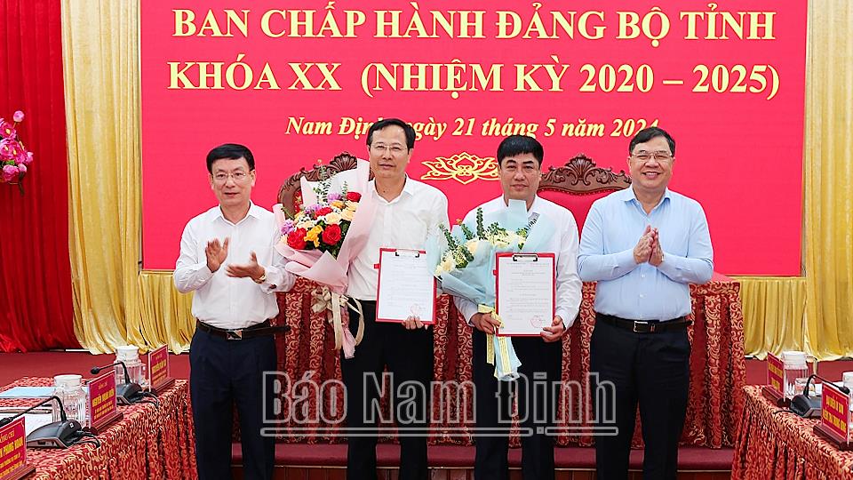 Tại hội nghị, đồng chí Nguyễn Văn Va, Ủy viên Ban TVTU, Trưởng Ban Tổ chức Tỉnh ủy công bố Quyết định số 1250-QĐNS/TW, ngày 17-5-2024 của Ban Bí thư Trung ương Đảng về việc chỉ định Đại tá Nguyễn Hữu Mạnh, Giám đốc Công an tỉnh tham gia BCH, Ban TVTU Nam Định nhiệm kỳ 2020-2025; Công bố Quyết định số 1210-QĐNS/TW, ngày 25-4-2024 của Ban Bí thư về việc chỉ định tham gia BCH Đảng bộ tỉnh Nam Định nhiệm kỳ 2020-2025 đối với các đồng chí: Lưu Quang Tuyển, Bí thư Huyện ủy Nam Trực; Đinh Xuân Hùng, Giám đốc Sở Giao thông vận tải.