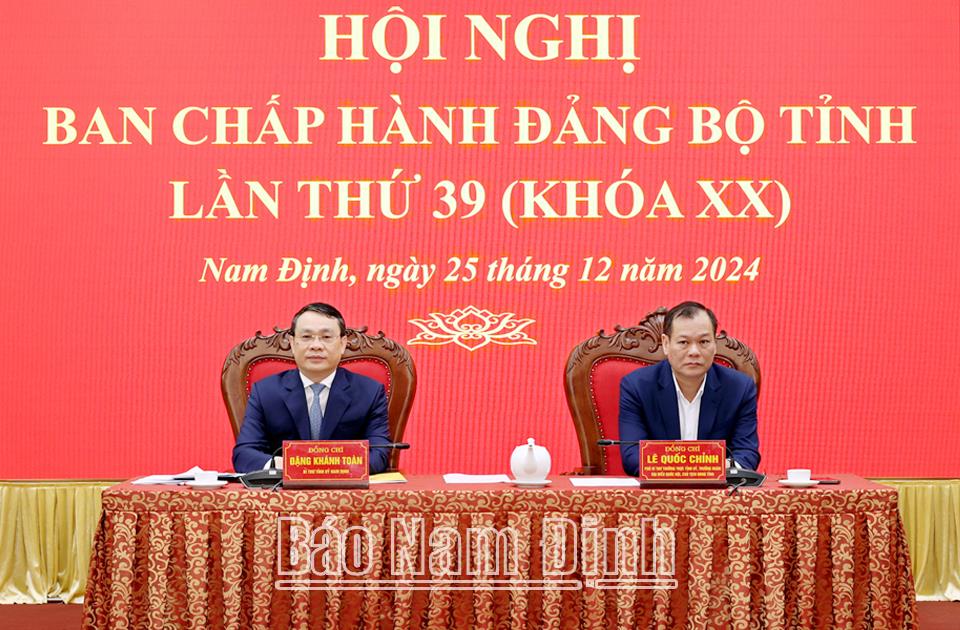 Phát biểu kết luận hội nghị, đồng chí Bí thư Tỉnh uỷ Đặng Khánh Toàn đánh giá cao những ý kiến đóng góp tâm huyết, trách nhiệm nhằm hoàn thiện các dự thảo báo cáo, chương trình; đồng thời phân tích về những xu hướng, bối cảnh, tình hình phát triển mới của tỉnh hiện tại và tương lai. Đồng chí Bí thư Tỉnh uỷ nhấn mạnh, năm 2025 là năm có ý nghĩa đặc biệt quan trọng, năm cuối thực hiện Kế hoạch phát triển kinh tế - xã hội 5 năm 2021-2025, năm tổ chức đại hội đảng bộ các cấp tiến tới Đại hội lần thứ XIV của Đảng; phấn đấu thực hiện thắng lợi toàn diện các mục tiêu, nhiệm vụ của năm 2025; hoàn thành và hoàn thành vượt mức các chỉ tiêu kinh tế - xã hội 5 năm 2021-2025 theo Nghị quyết Đại hội Đảng bộ tỉnh lần thứ XX đã đề ra, tạo tiền đề thuận lợi cho tỉnh Nam Định bước vào giai đoạn phát triển mới. Vì thế, trong công tác xây dựng, chỉnh đốn Đảng và hệ thống chính trị, các cấp, các ngành, địa phương cần tiếp tục tổ chức thực hiện nghiêm, quyết liệt, đồng bộ, có hiệu quả các đường lối, chủ trương của Đảng, chính sách, pháp luật của Nhà nước, các nghị quyết, chương trình công tác, quy chế làm việc của BCH Đảng bộ tỉnh, Ban TVTU. Thực hiện quyết liệt, hiệu quả các phương án, đề án sắp xếp tổ chức bộ máy của hệ thống chính trị tinh, gọn, mạnh, hoạt động hiệu năng, hiệu lực, hiệu quả. Không để tình trạng tiêu cực, chạy chọt trong quá trình sắp xếp, tổ chức bộ máy, nhất là sắp xếp con người. Tự làm tốt công tác tư tưởng của từng đồng chí có liên quan là yêu cầu quan trọng nhất, nêu cao trách nhiệm nêu gương của người đứng đầu các cơ quan, đơn vị được sáp nhập, sắp xếp.