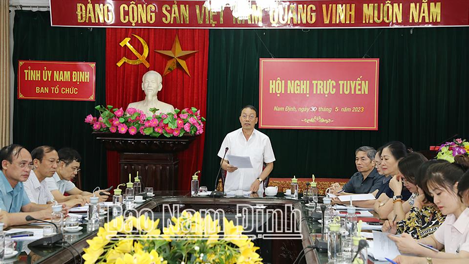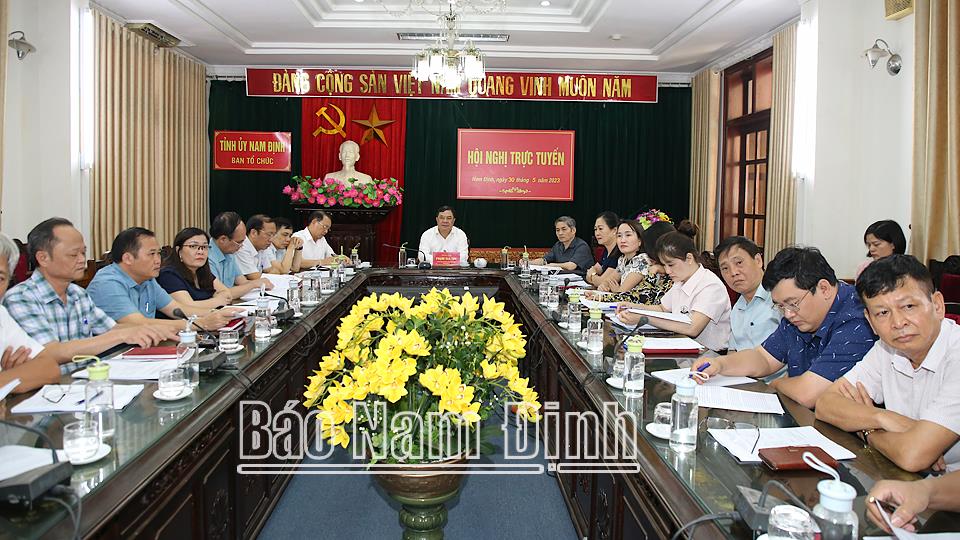 Chiều 30-5, Ban Tổ chức Trung ương tổ chức hội nghị trực tuyến lấy ý kiến góp ý về sửa đổi, bổ sung Quy định 132-QĐ/TW, ngày 8-3-2018 của Bộ Chính trị về kiểm điểm, đánh giá, xếp loại chất lượng hàng năm đối với tập thể, cá nhân trong hệ thống chính trị. Đồng chí Hoàng Đăng Quang, Ủy viên BCH Trung ương Đảng, Phó Trưởng Ban Tổ chức Trung ương chủ trì hội nghị. Dự hội nghị tại điểm cầu tỉnh Nam Định có các đồng chí: Phạm Gia Túc, Ủy viên BCH Trung ương Đảng, Bí thư Tỉnh ủy; Nguyễn Văn Va, Ủy viên Ban TVTU, Trưởng Ban Tổ chức Tỉnh ủy; lãnh đạo Ban Tổ chức Tỉnh ủy và Sở Nội vụ; Ban tổ chức các huyện, thành ủy.