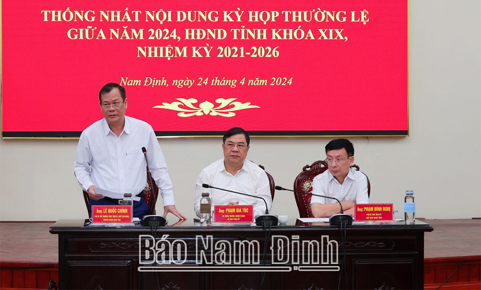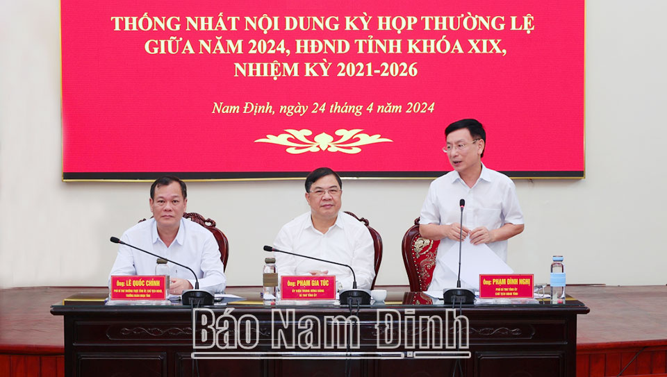 Tại hội nghị, Thường trực HĐND tỉnh trình bày dự kiến nội dung, chương trình kỳ họp thường lệ giữa năm 2024. Theo đó, kỳ họp dự kiến diễn ra trong 2 ngày (trong khoảng thời gian từ ngày 1 đến ngày 10-7-2024). Tại kỳ họp, HĐND tỉnh sẽ xem xét, thông qua 27 nội dung gồm đánh giá tình hình thực hiện nhiệm vụ phát triển kinh tế - xã hội 6 tháng đầu năm và nhiệm vụ trọng tâm 6 tháng cuối năm 2024; quyết định một số nội dung thuộc thẩm quyền của HĐND tỉnh theo quy định của pháp luật để đáp ứng yêu cầu thực tiễn phát triển kinh tế - xã hội của tỉnh; các báo cáo của Thường trực HĐND tỉnh, các ngành trong khối Nội chính và các Ban của HĐND tỉnh…