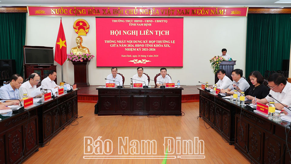 Chiều 24-4, Thường trực HĐND tỉnh phối hợp với Thường trực UBND tỉnh, Ban Thường trực Ủy ban MTTQ tỉnh và các cơ quan, đơn vị liên quan tổ chức Hội nghị liên tịch để thống nhất nội dung, chương trình, thời gian tiến hành kỳ họp thường lệ giữa năm 2024, HĐND tỉnh khóa XIX, nhiệm kỳ 2021-2026.